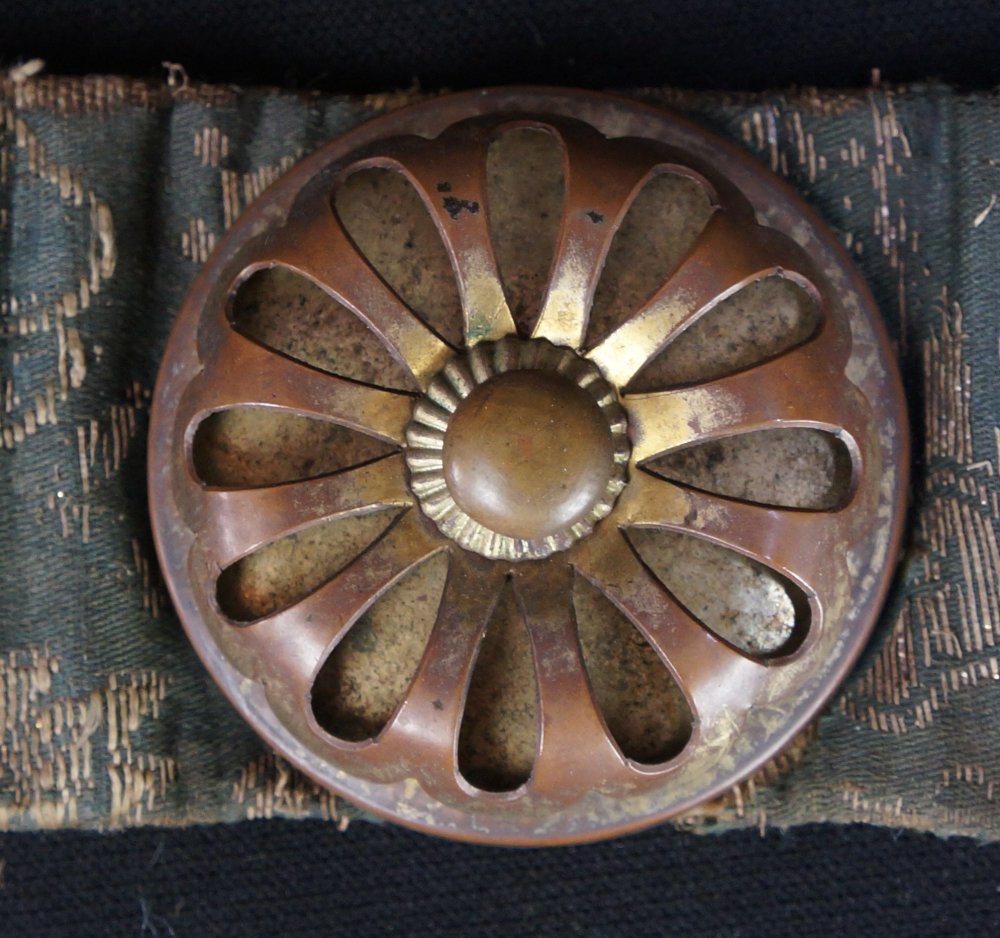 Antique Japan Buddhist monk relics silk and bronze temple wear 1700