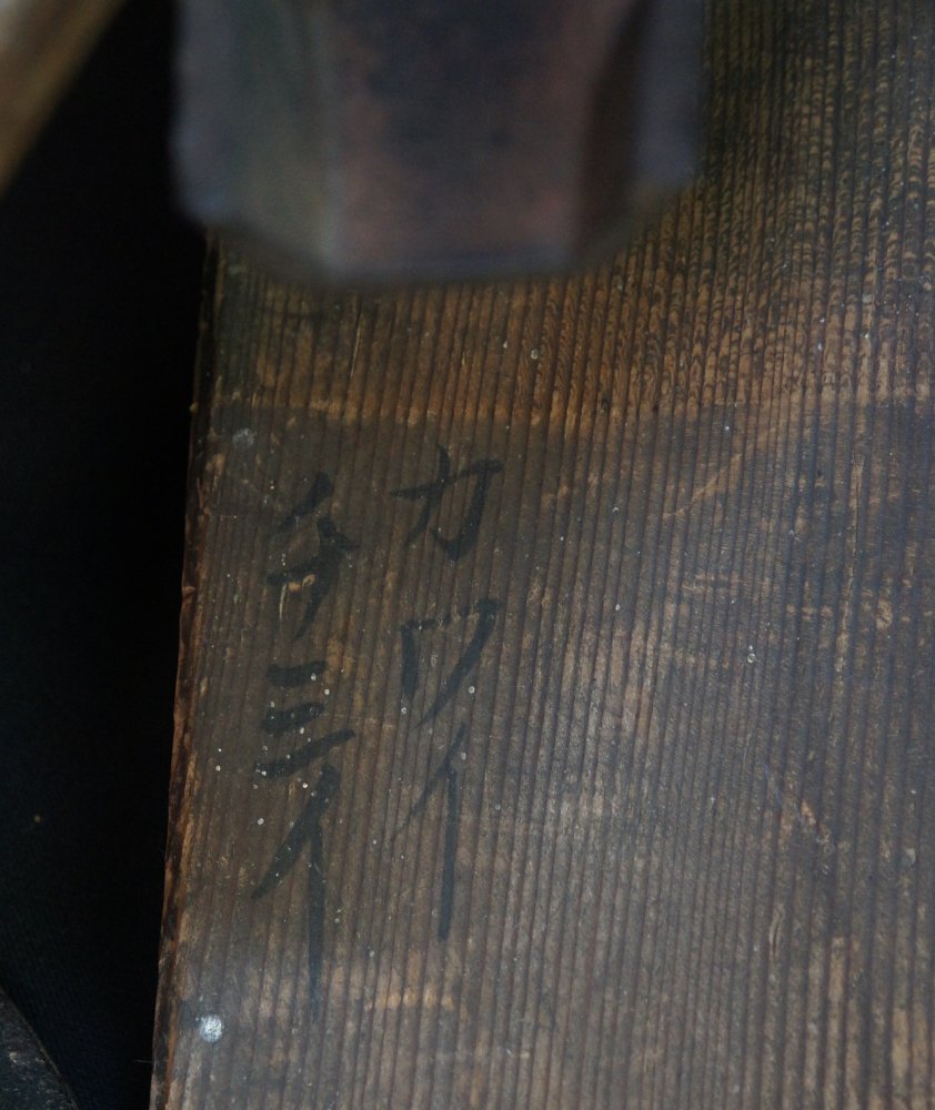 Antique Yagen Japanese bronze medicine grinder for Japanese remedy herbal medicine  (Kampoyaku 漢方薬 Japanese medicine). Cast iron lost wax technique craft and wood base for indoor use, in original conditions, no fractures. Old owners name on borrom: Okada Reishundo (岡田令春堂). Very interesting medical tool of Edo era Japan, nice patina and craft, wear from usage and time. still working remedy / herbal medicine grinding tool, immediately usable.