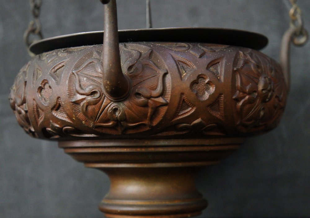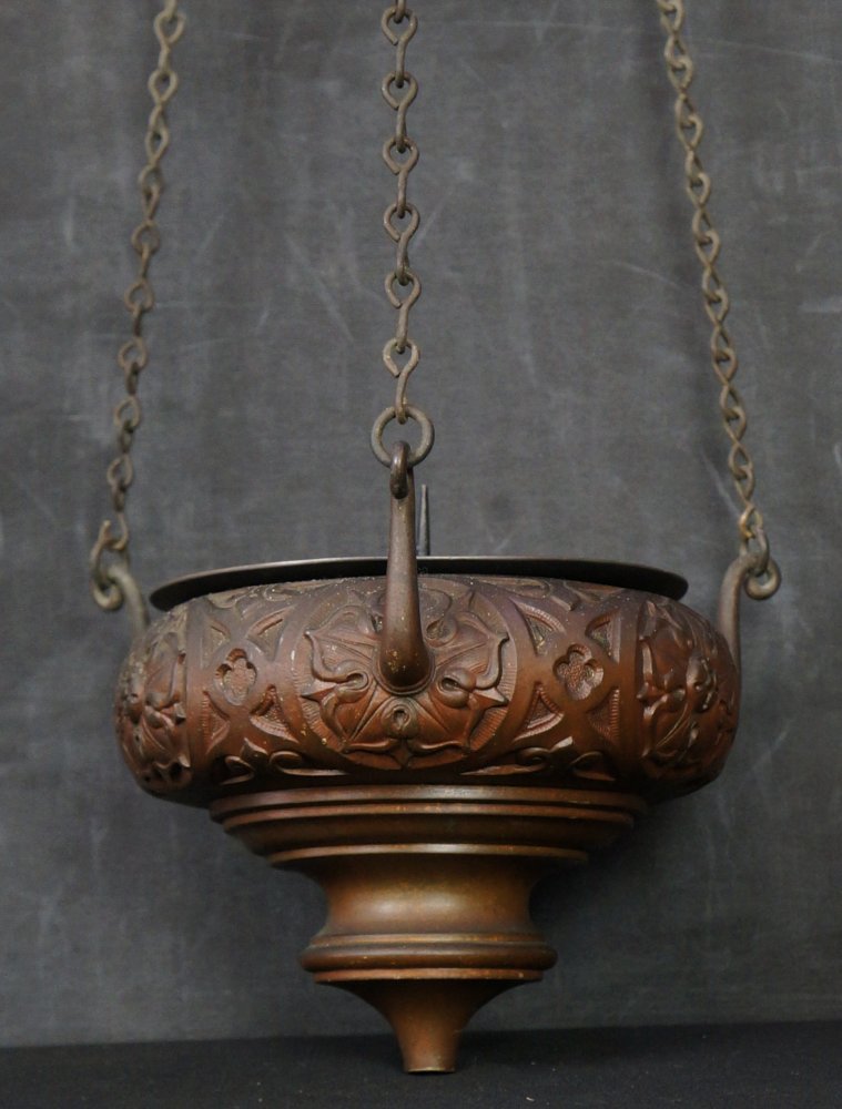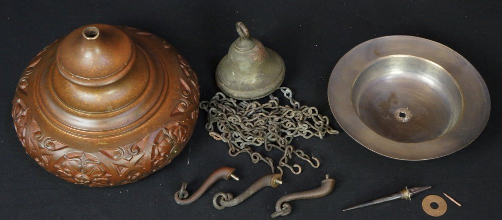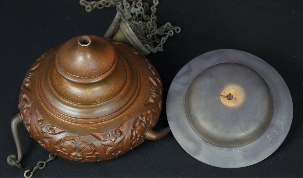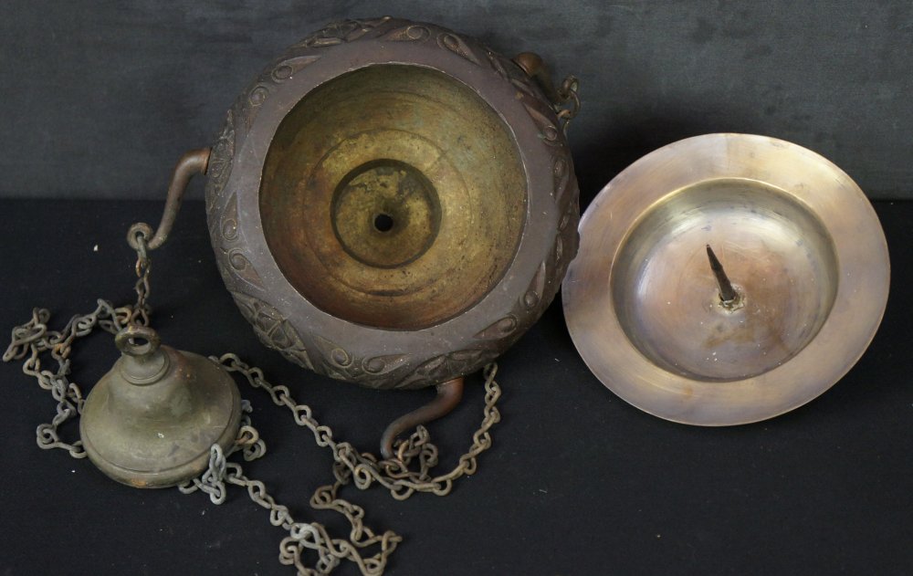 Japanese Buddhist hanging bronze candle vase 1950 Japan craft