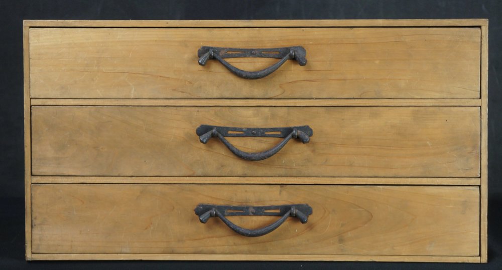 Antique Tansu Japanese furniture made of Matsu wood and iron handles, 3 draws opening. Some wear from usage and time, in original conditions as found. Immediately usable, please see photos.
