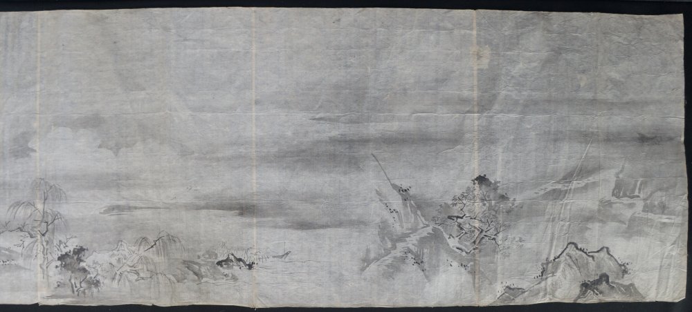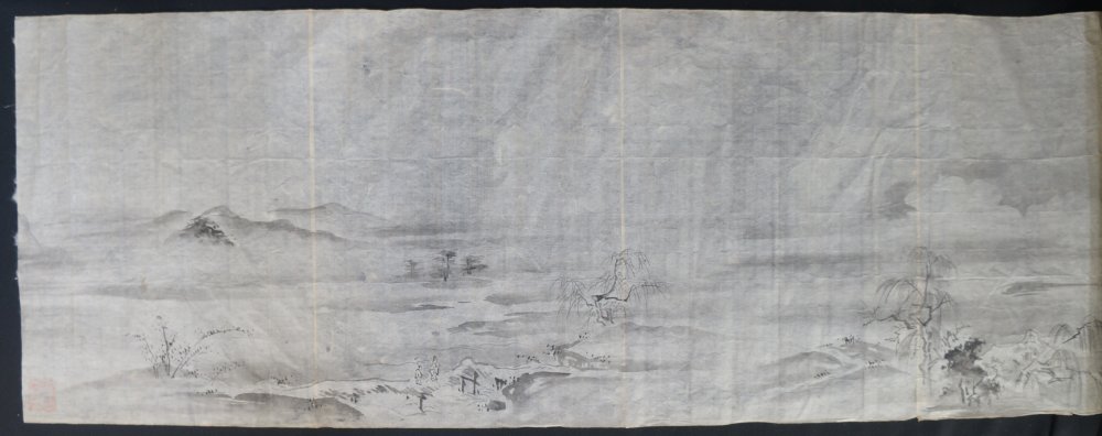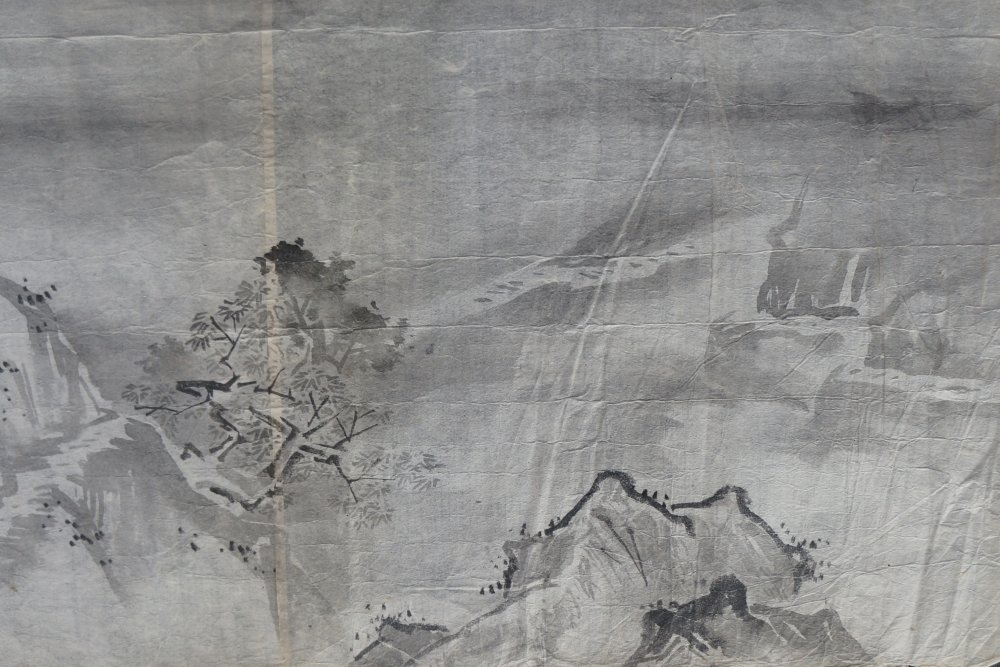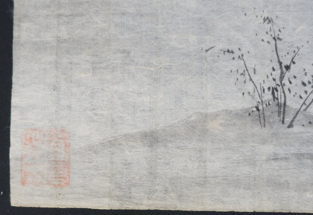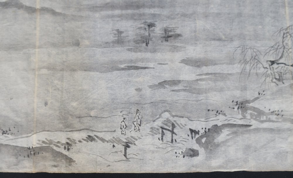 Antique Japanese rural landscape antique Edo 1800 Sumi-e ink sketch