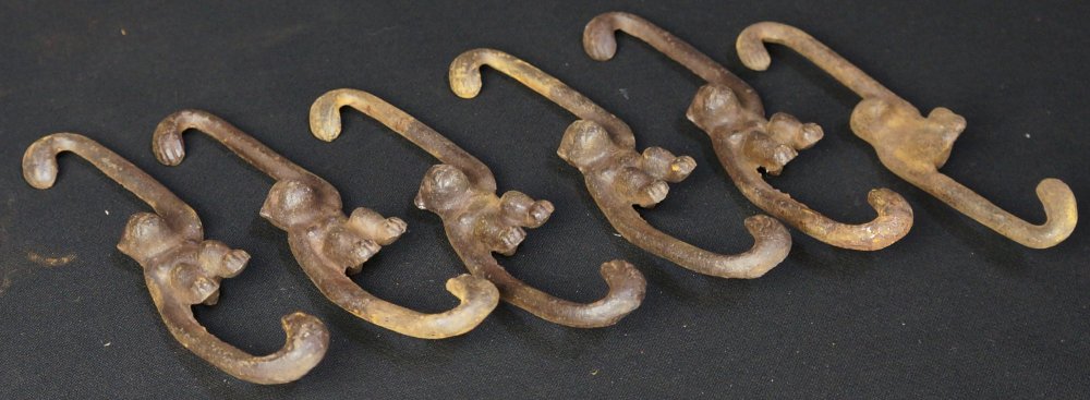 Vintage Japanese iron Saru hook total of 6 and craft, medium good conditions,  wear from long usage, time abd oxidation. Ikebana tools, immediately usable.