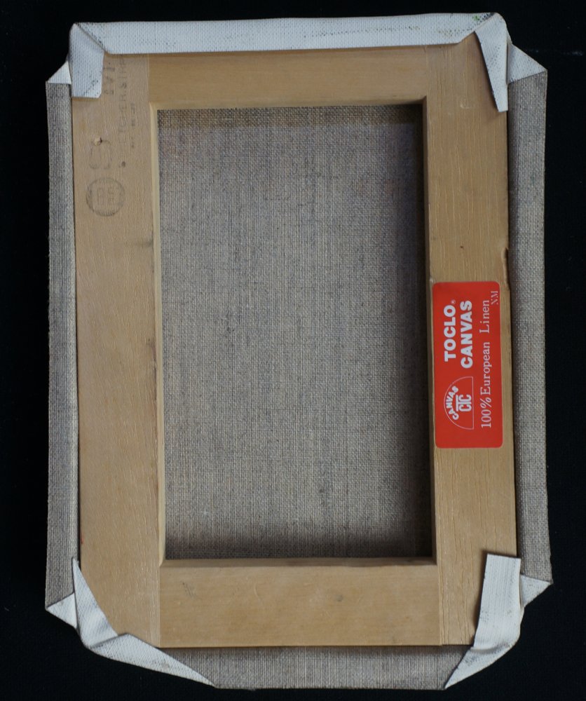 Dimensions: canvas 22x16 cm, wood frame  38 x 31 cm, total weight 1.600 Kg + wrapping