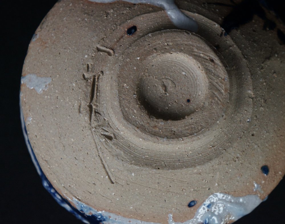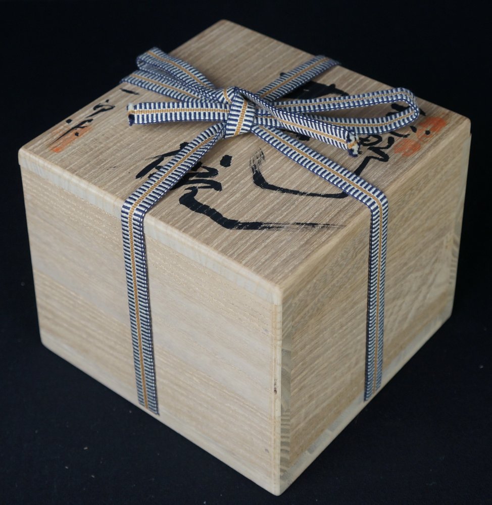 Fine craft Shino Chawan ceramic hand made bowl, kiln craft Shino style. Abstract motive surface, slightly irregular shape and glazing. Signed by maker on bottom and box lid Ichiu (一卯). Very good conditions, with protective wood box. Immediately usable.