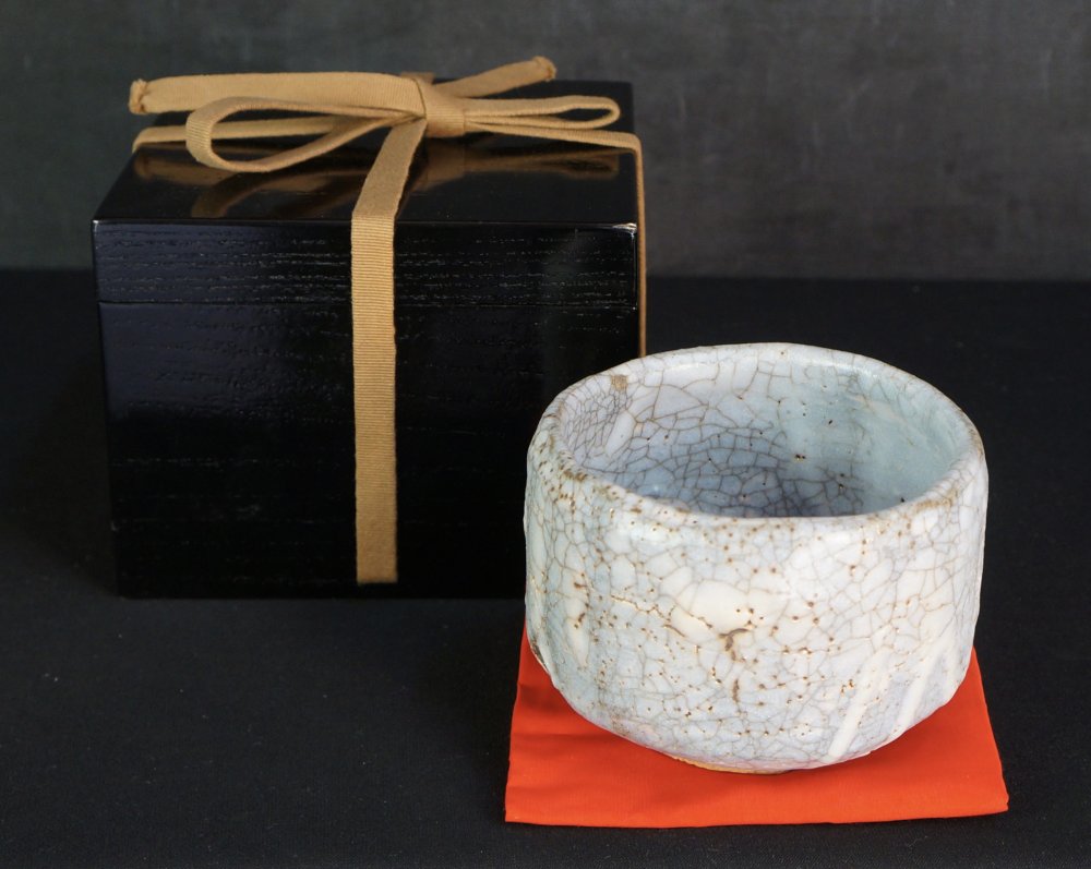 Fine craft Shino-yaki Chawan ceramic hand made bowl, wood kiln craft. Green Tea Ceremony fine shape and  glazing. Very good conditions, with protective lacquered Kiri wood box. Immediately usable.