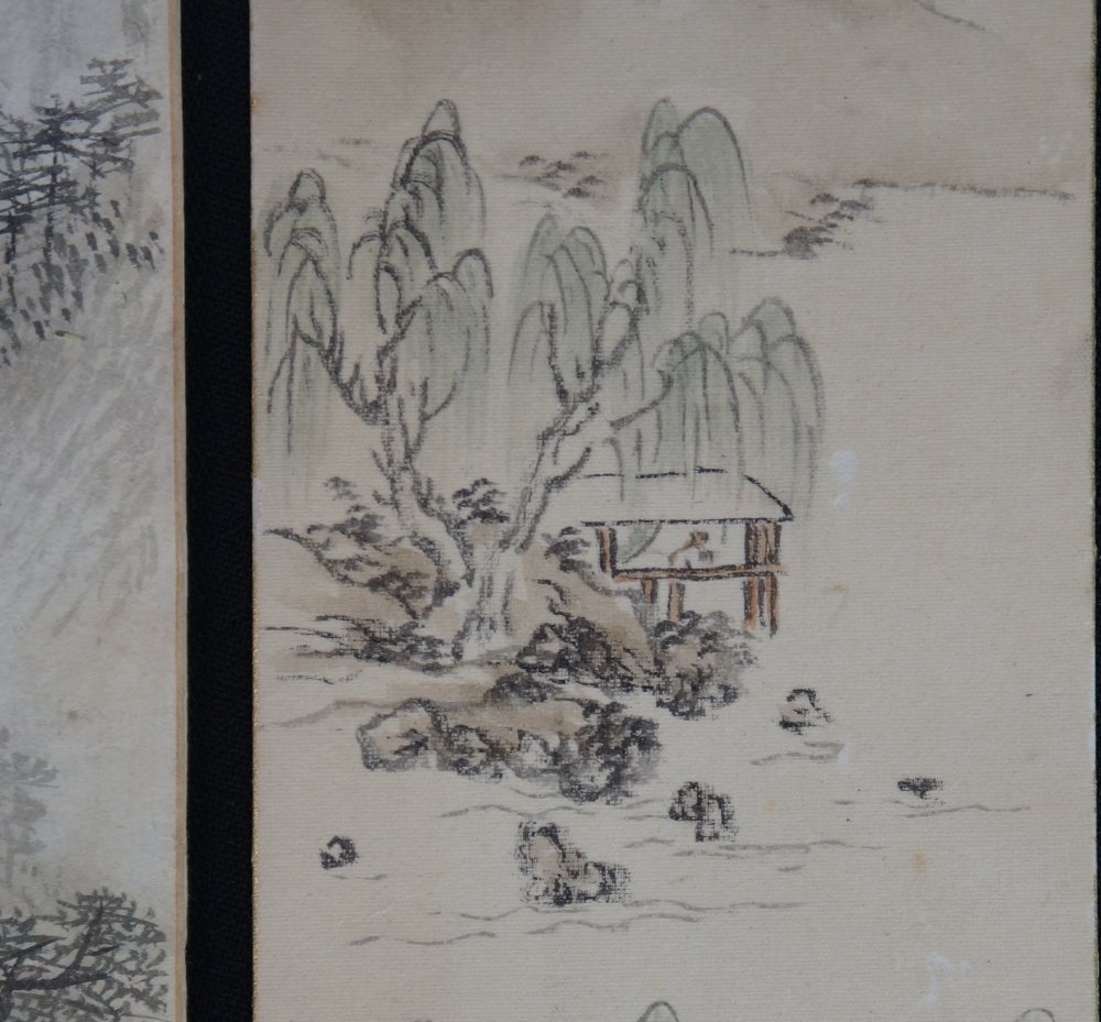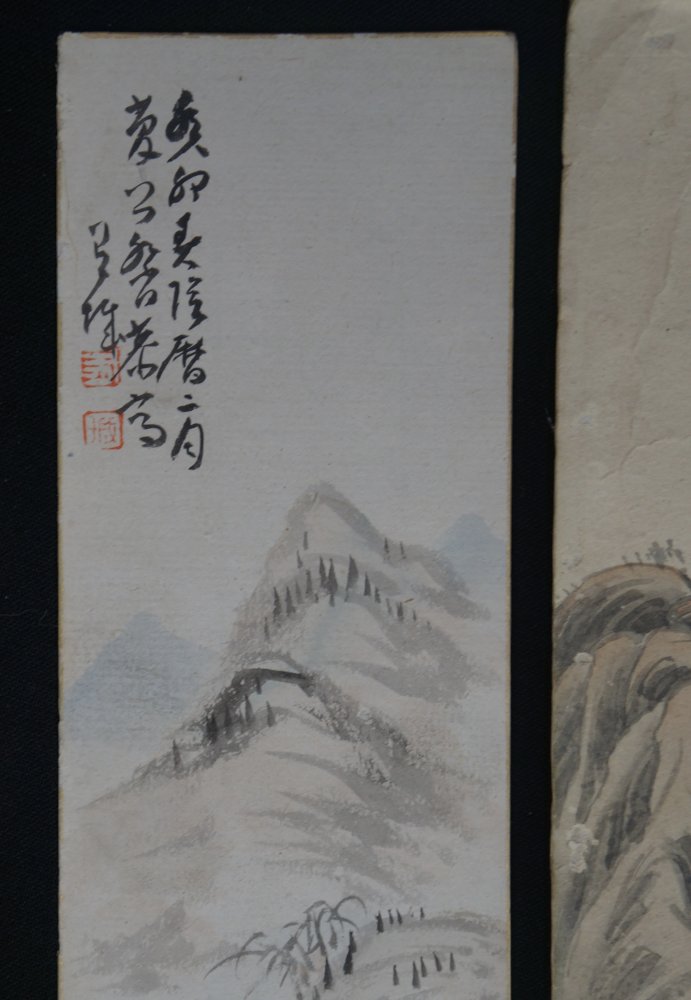 Japan Zen art Tanzaku vertical watercolor landscape painting 1900