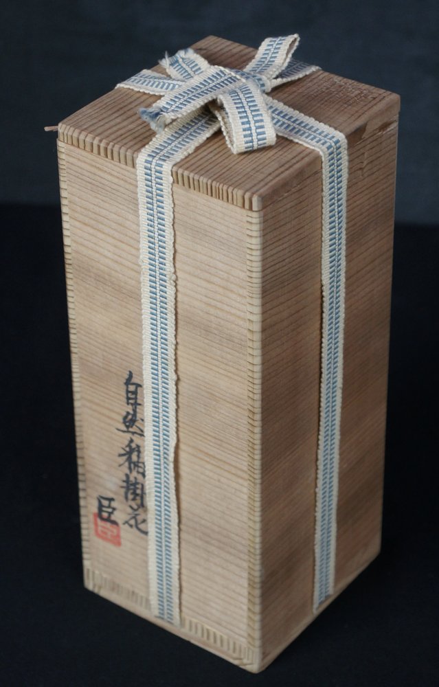 Japan Bizen ceramic Hanaire floral vase for Japanese wall hanging interior. Nice manufacture by Toyosaki Nobihiko master potter, signed on box. Back ring for wall hanging Ikebana floral decorations. Very good conditions no fractures, immediately usable.