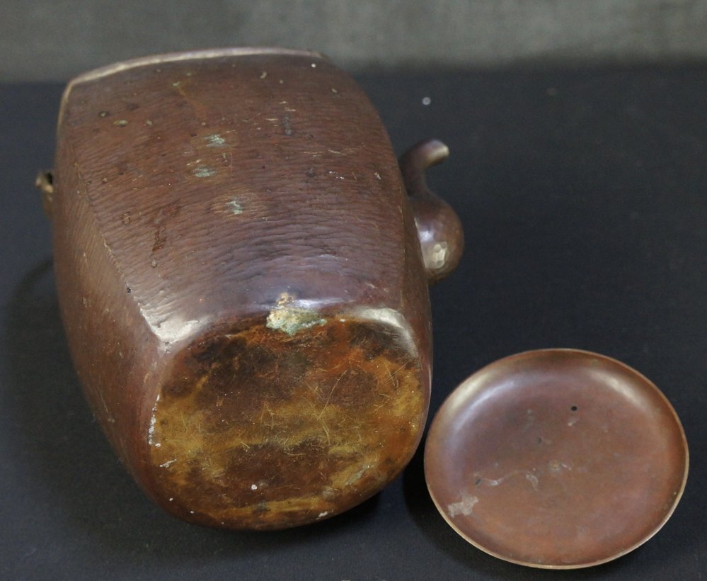 Antique Japan bronze kettle Yakan hand made hammered craft 1880 Sencha tea