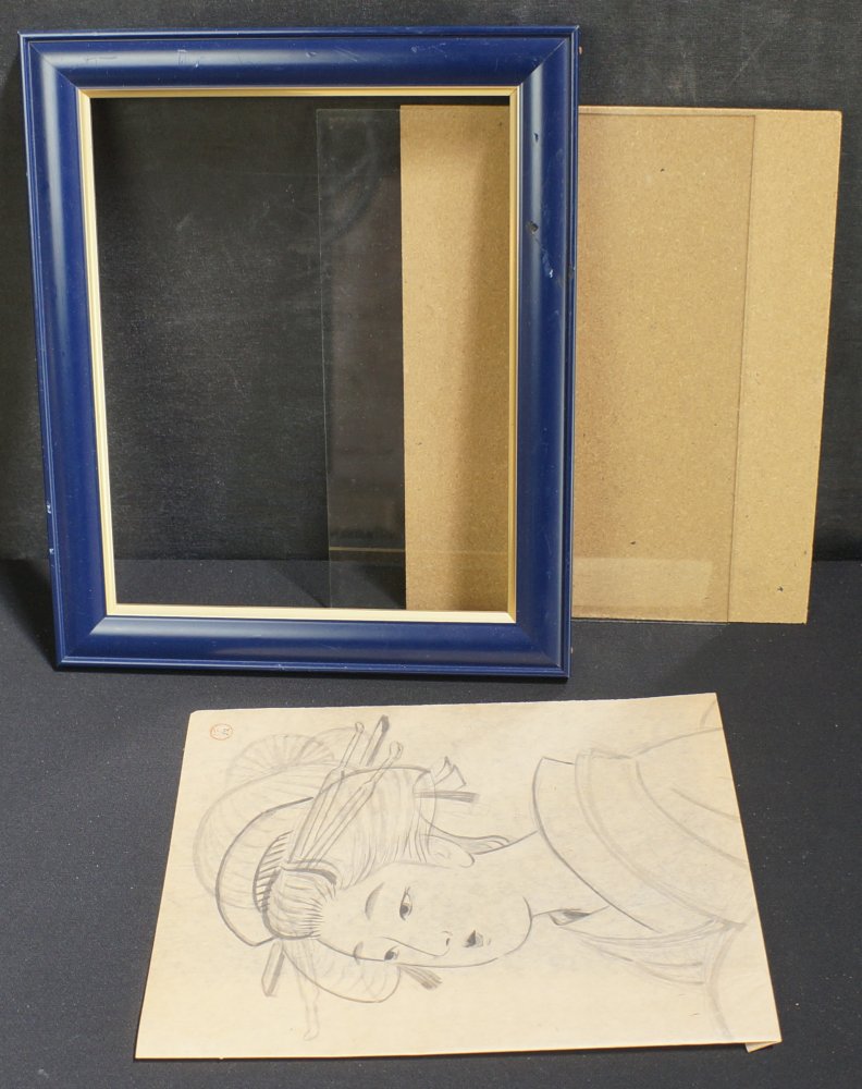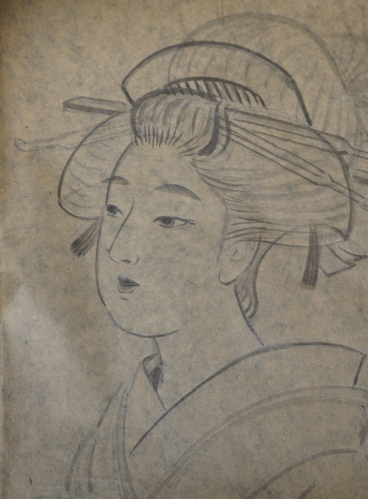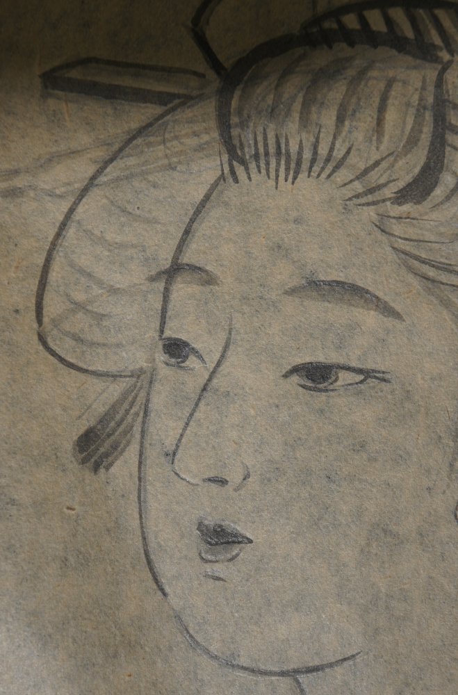 Japan sketch painting Geisha Kimono 1920 hand craft