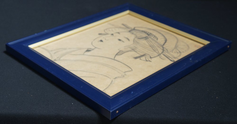 Japanese Geisha - Maiko sketch paintings on paper (recent frame), part of a painters workshop specialized in young Japanese girls portraits by Morikawa Seiha (森川青坡). Some wear from time and usage, Japanese art.