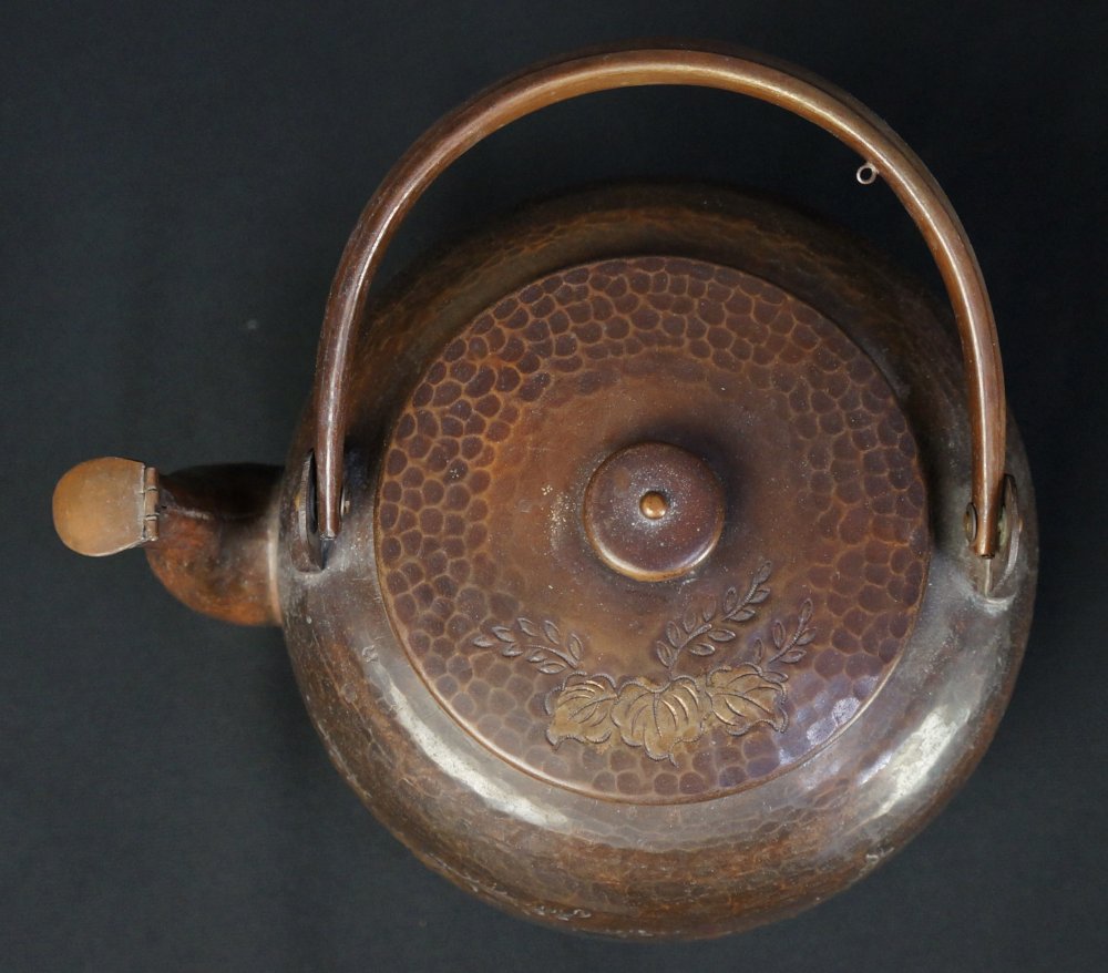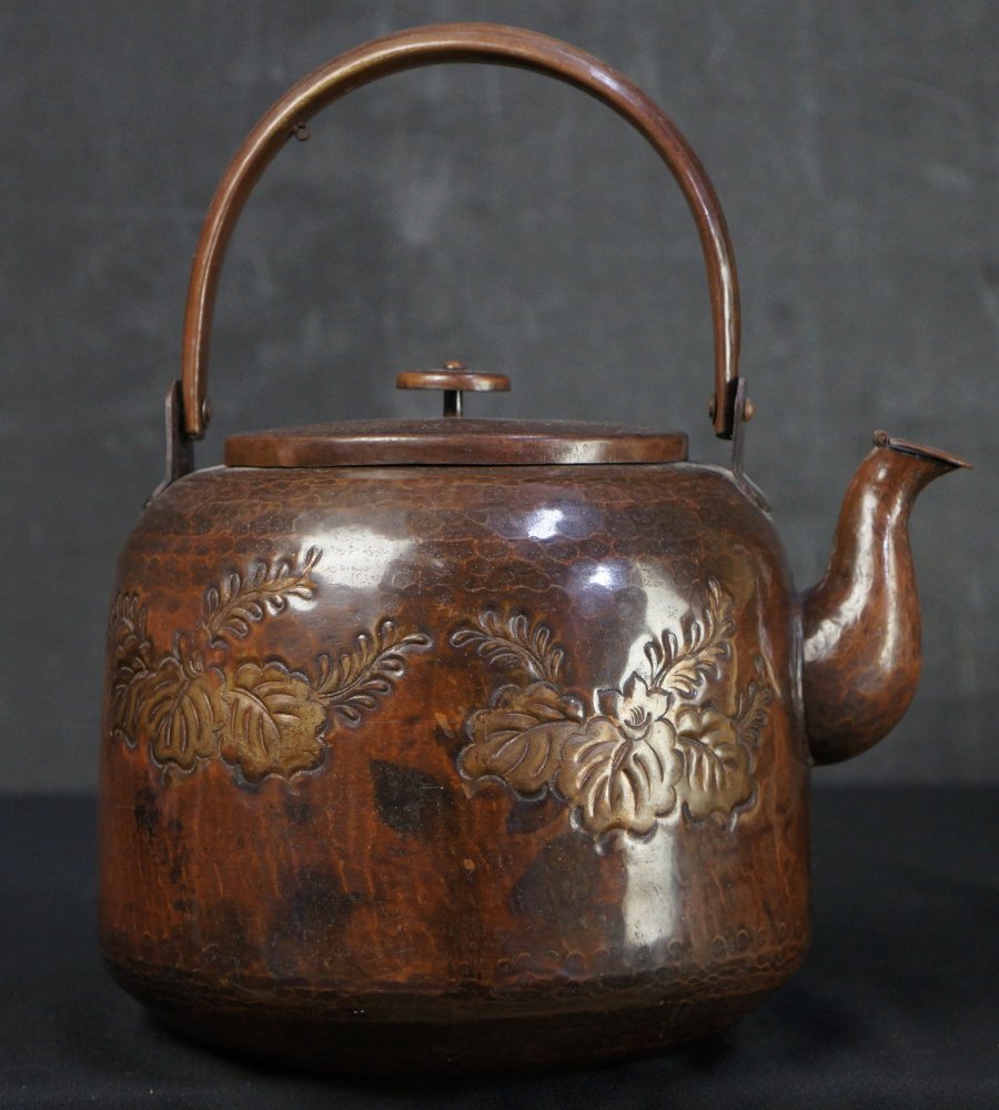 Japan bronze kettle Yakan hammered shaped 1930 tea art.