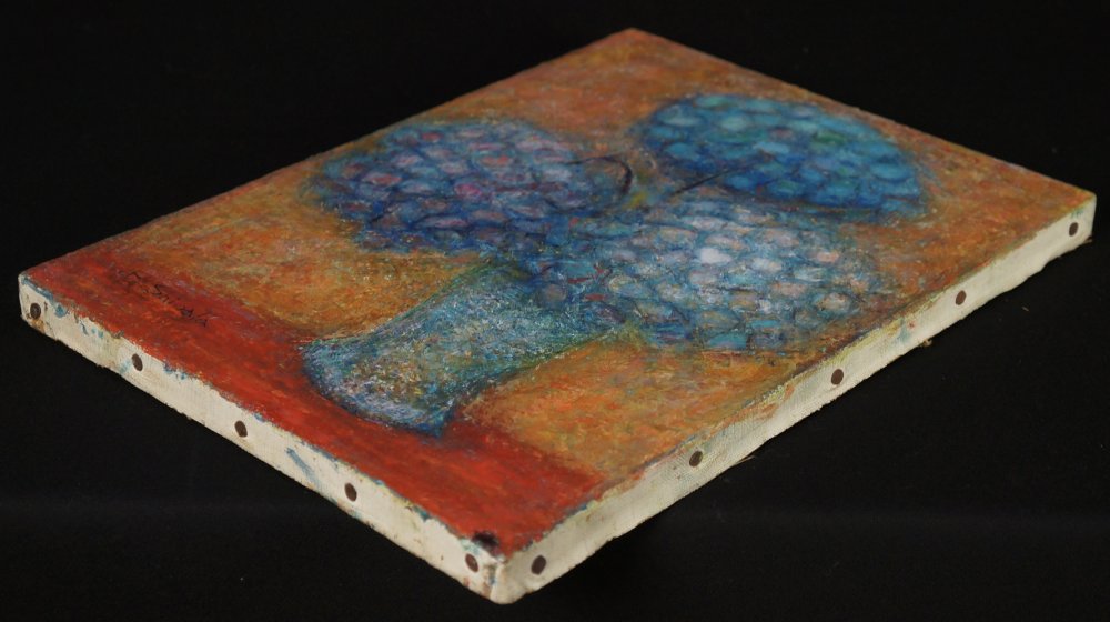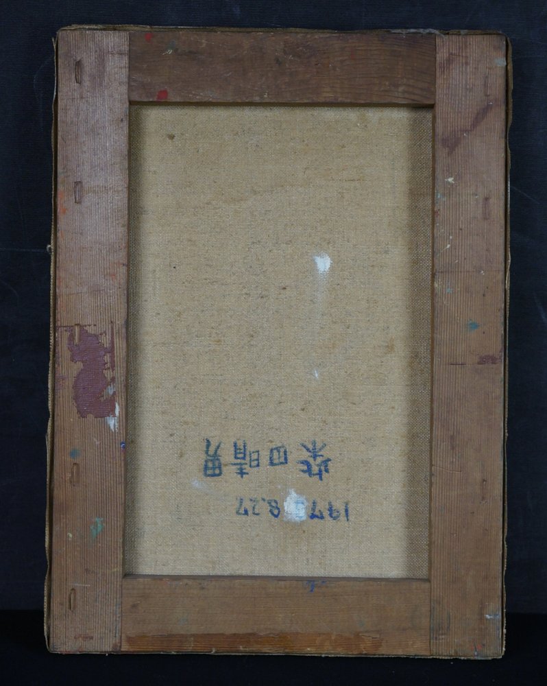 Vintage Japan floral oil painting Ajisai hydrangea on canvas craft 1973 art.