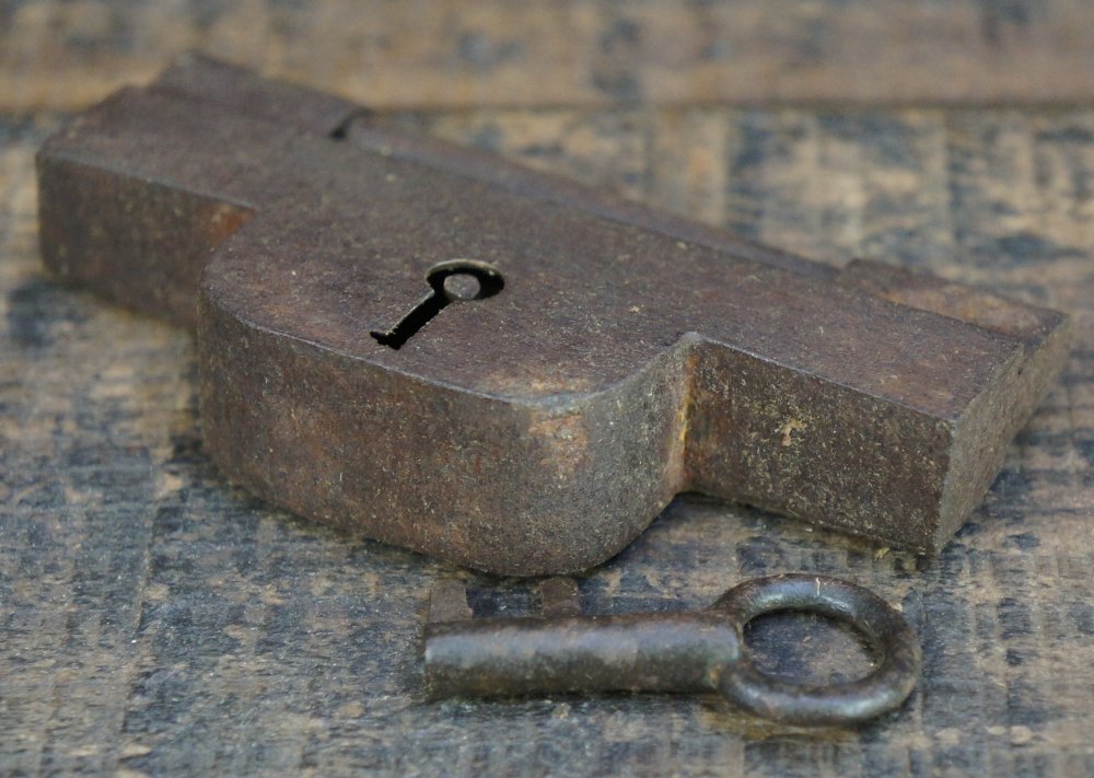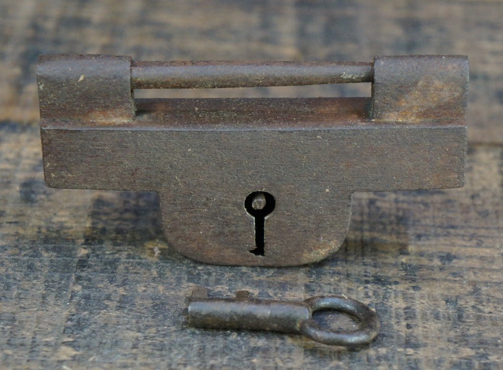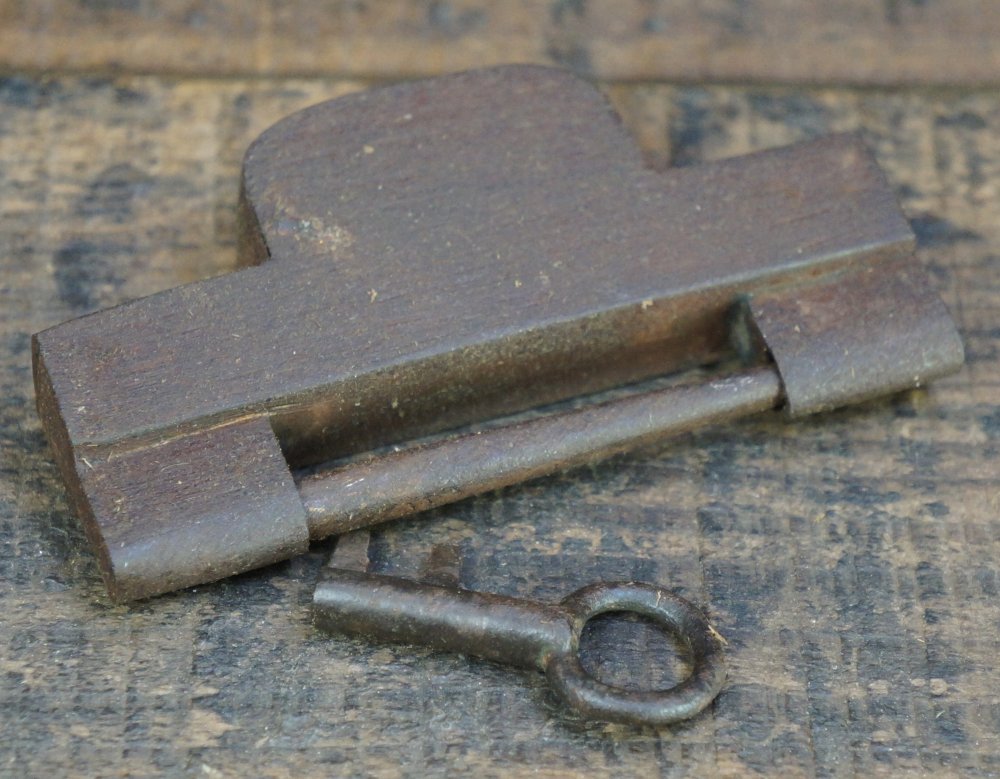 Antique Japanese iron lock with working key, blacksmith hand craft, good conditions, nice patina. Used in Japan Edo era to lock chests and furniture. Well preserved, immediately usable.