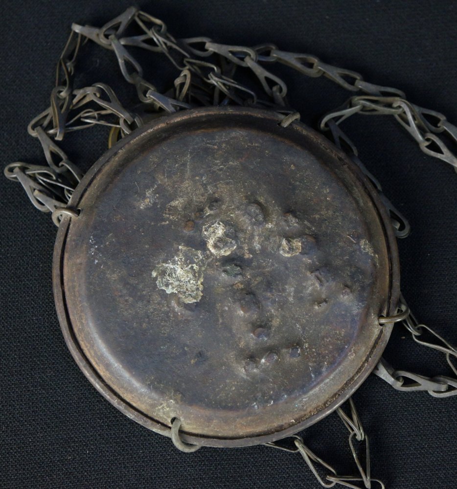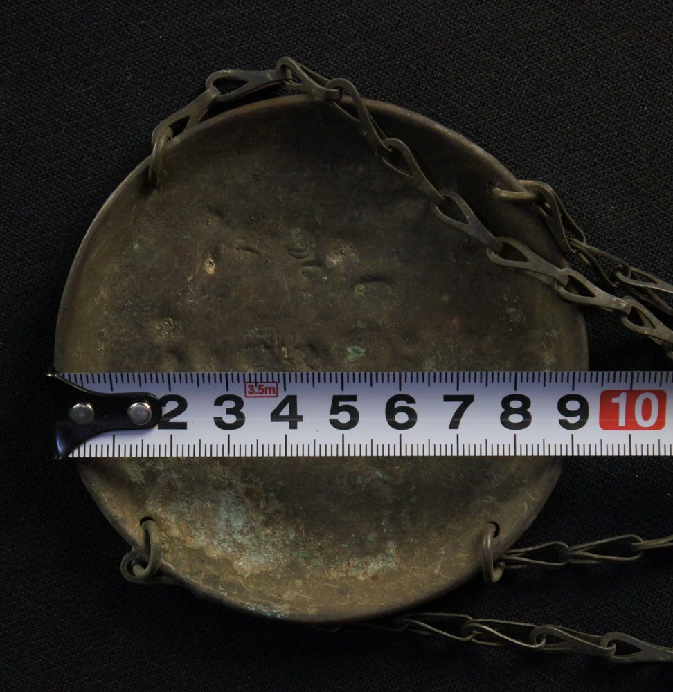 Antique Japanese bronze scale libra plate and chain, stamped plate surface, medium good conditions,  wear from long usage, abd time. Rural tools, immediately usable.