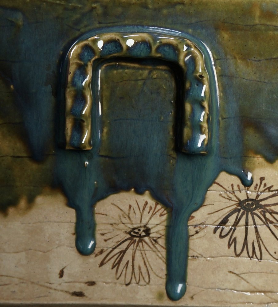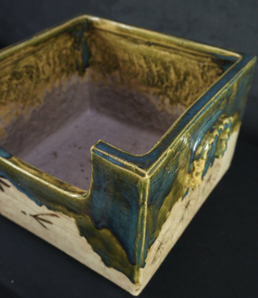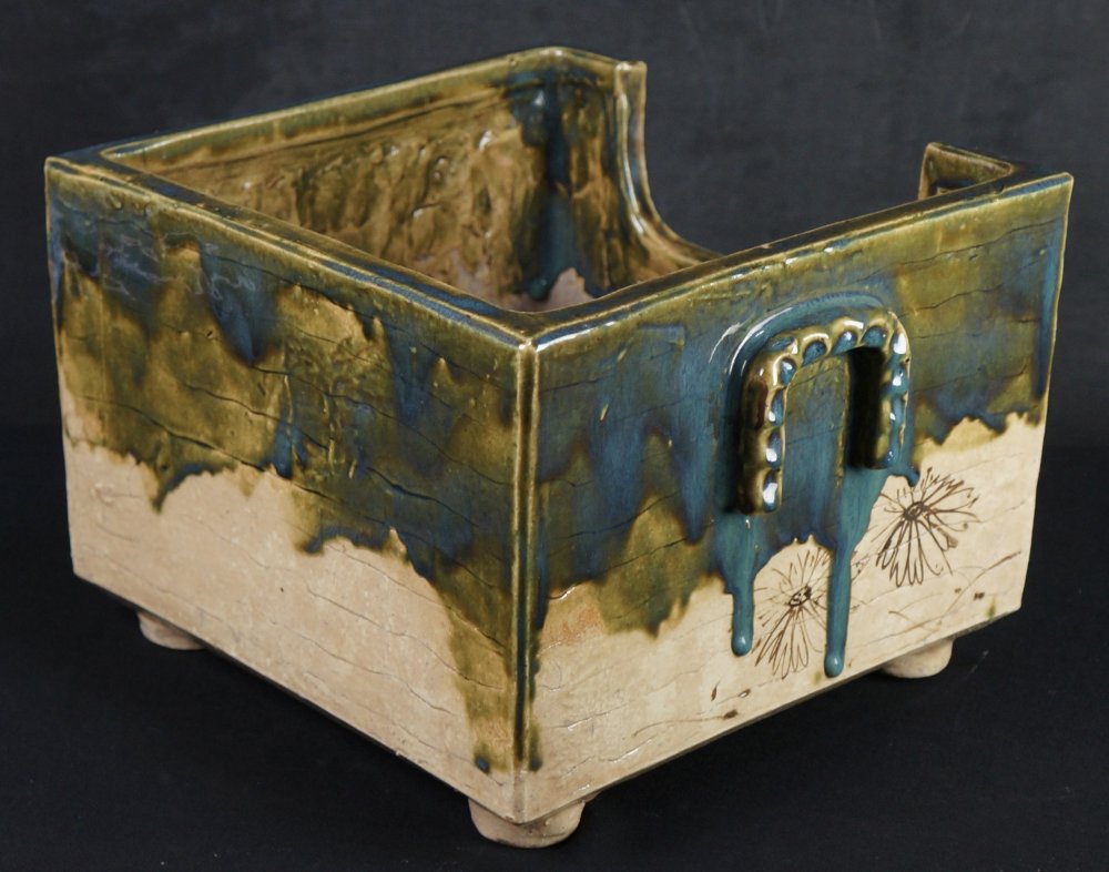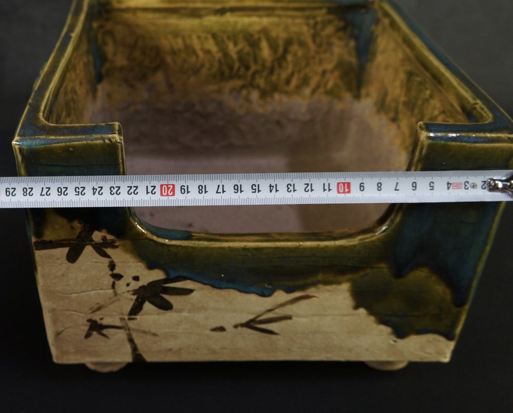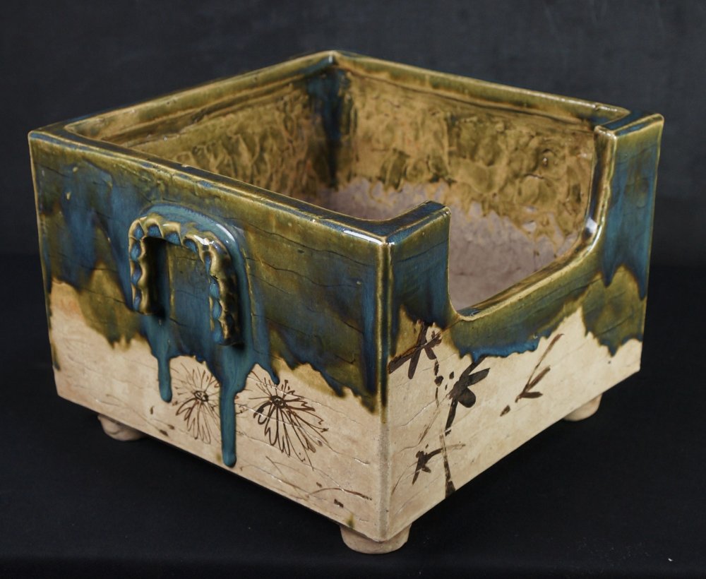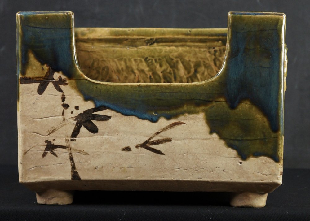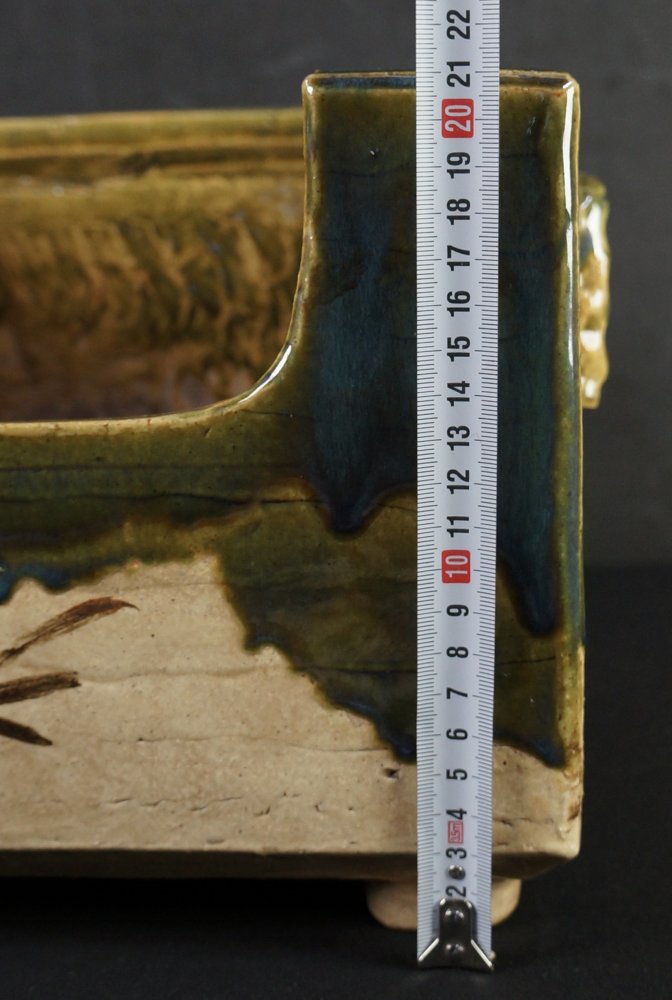 Fine Japanese ceramic Ao-Oribe Furo  brazer Tea craft 1960 Chashitsu master craft