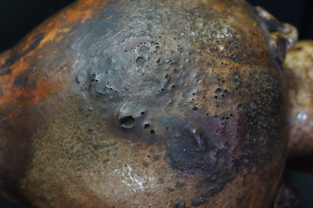 Antique Japan Chatsubo Bizen ceramic tea leaf holder 1800 wood kiln craft