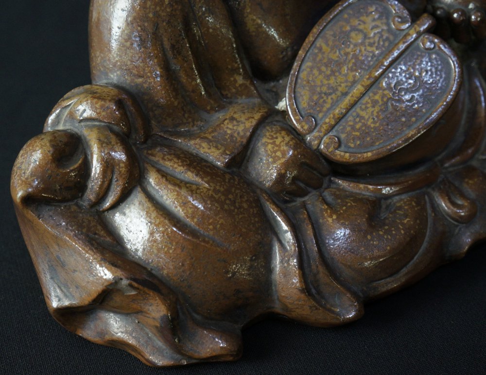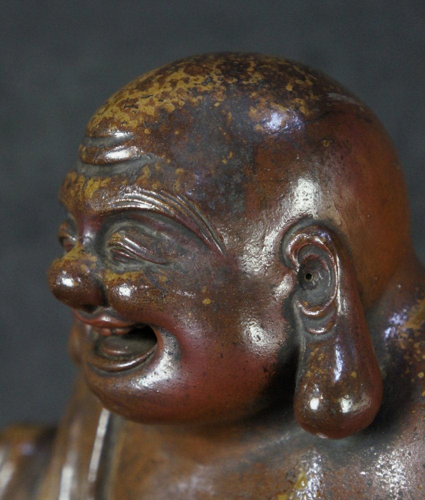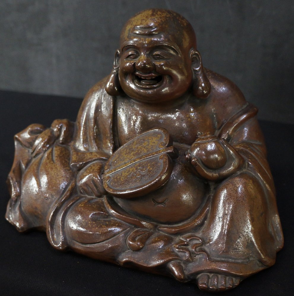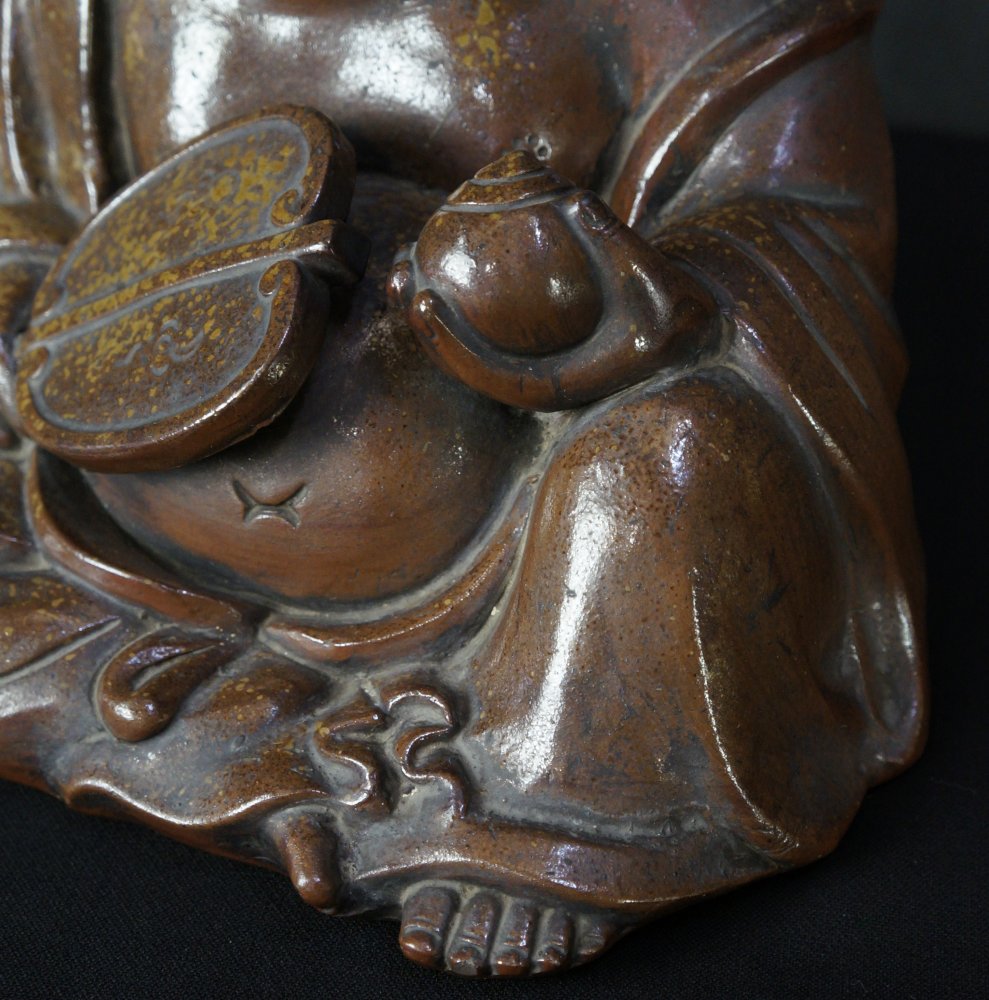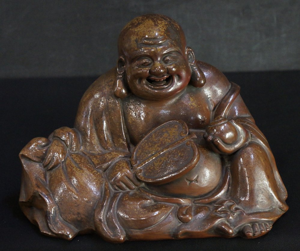 Japan Bizen ceramic Hotei deity sculpture 1900 Japan craft.