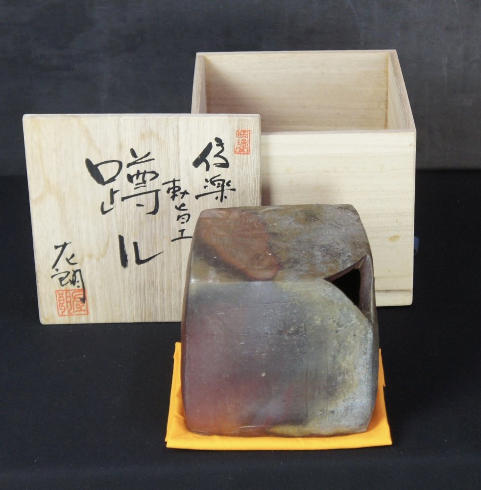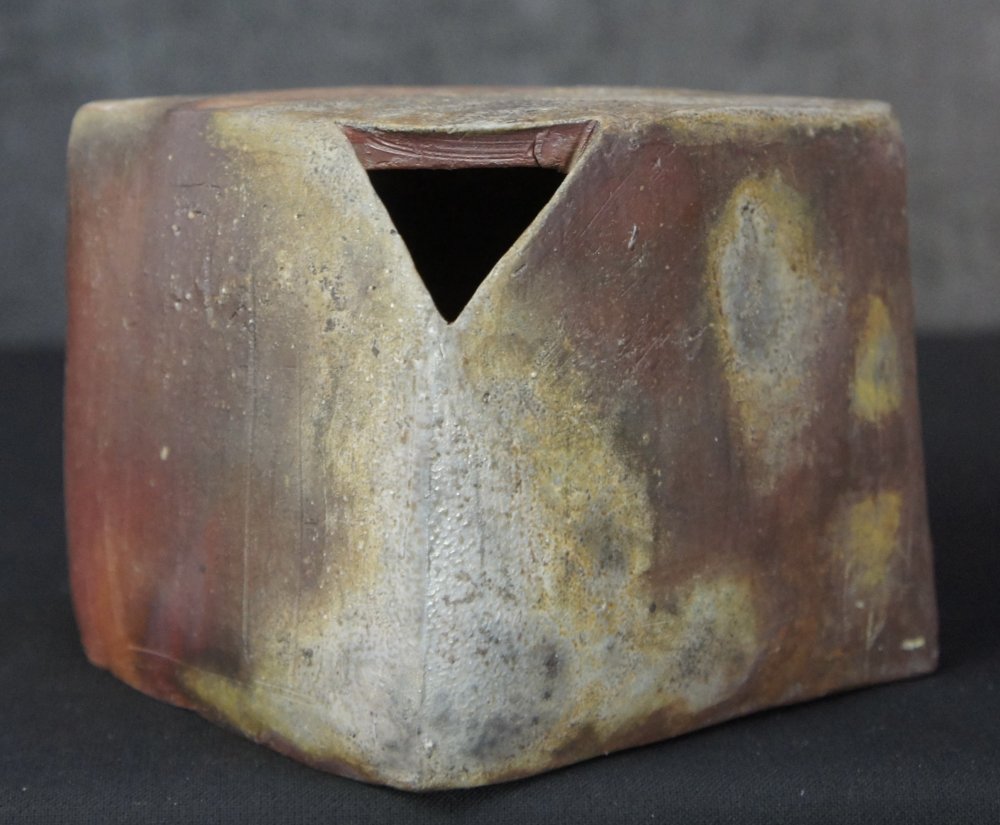 Japan ceramic Ikebana Mnimalist case Bizen kiln art 1980