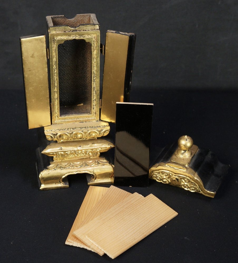 Japanese Buddhist temple altar sculpture 1980 lacquered wood gold leaf D