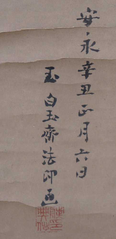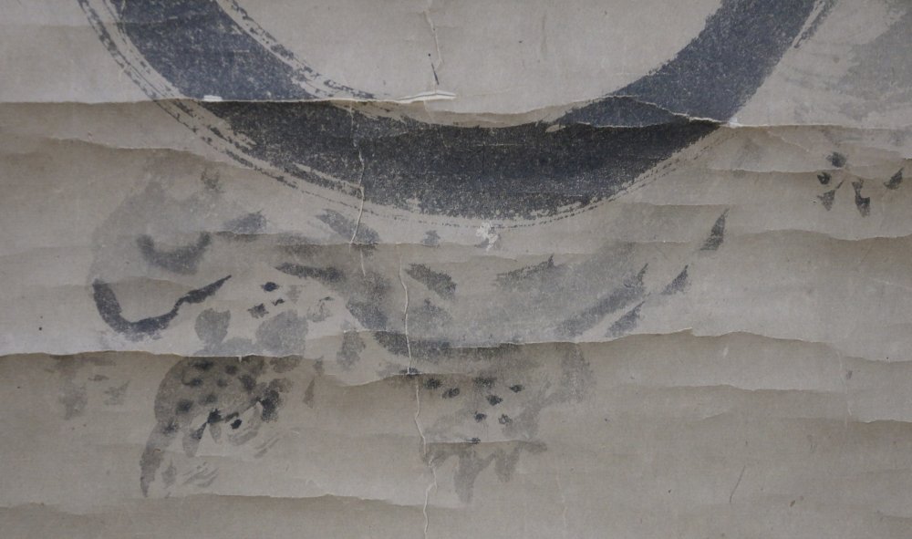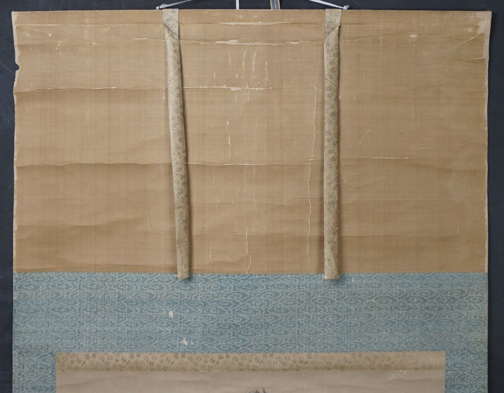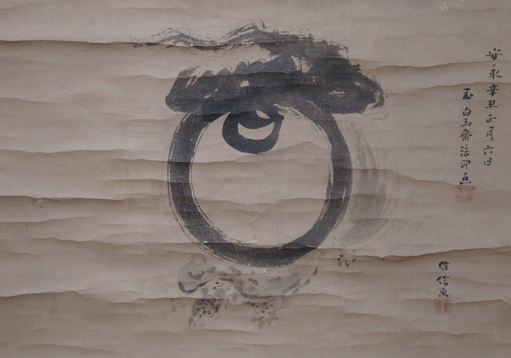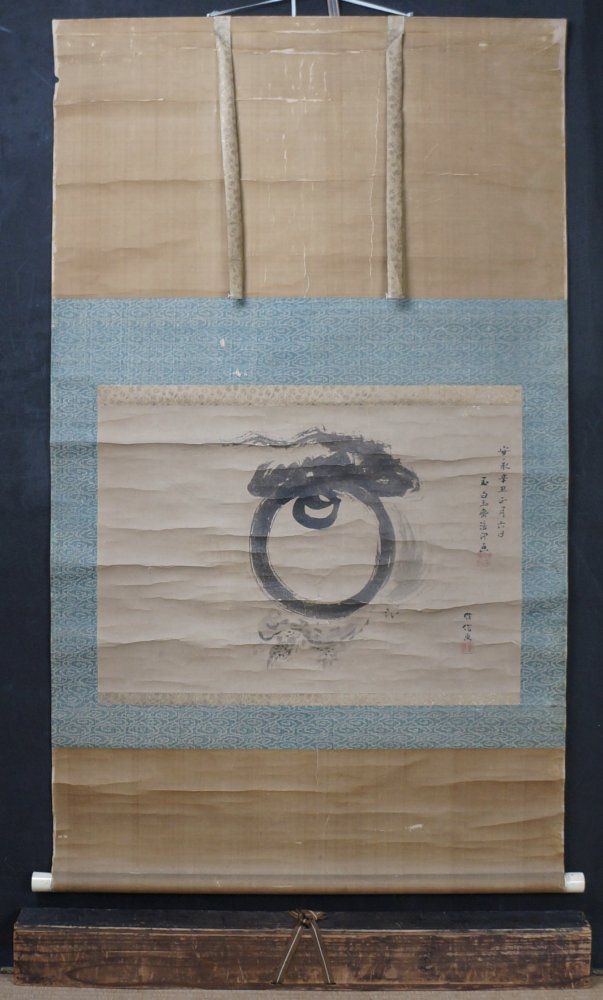 Antique Japanese scroll Buddhist Tama with turtle Sumi-e ink painting 1781