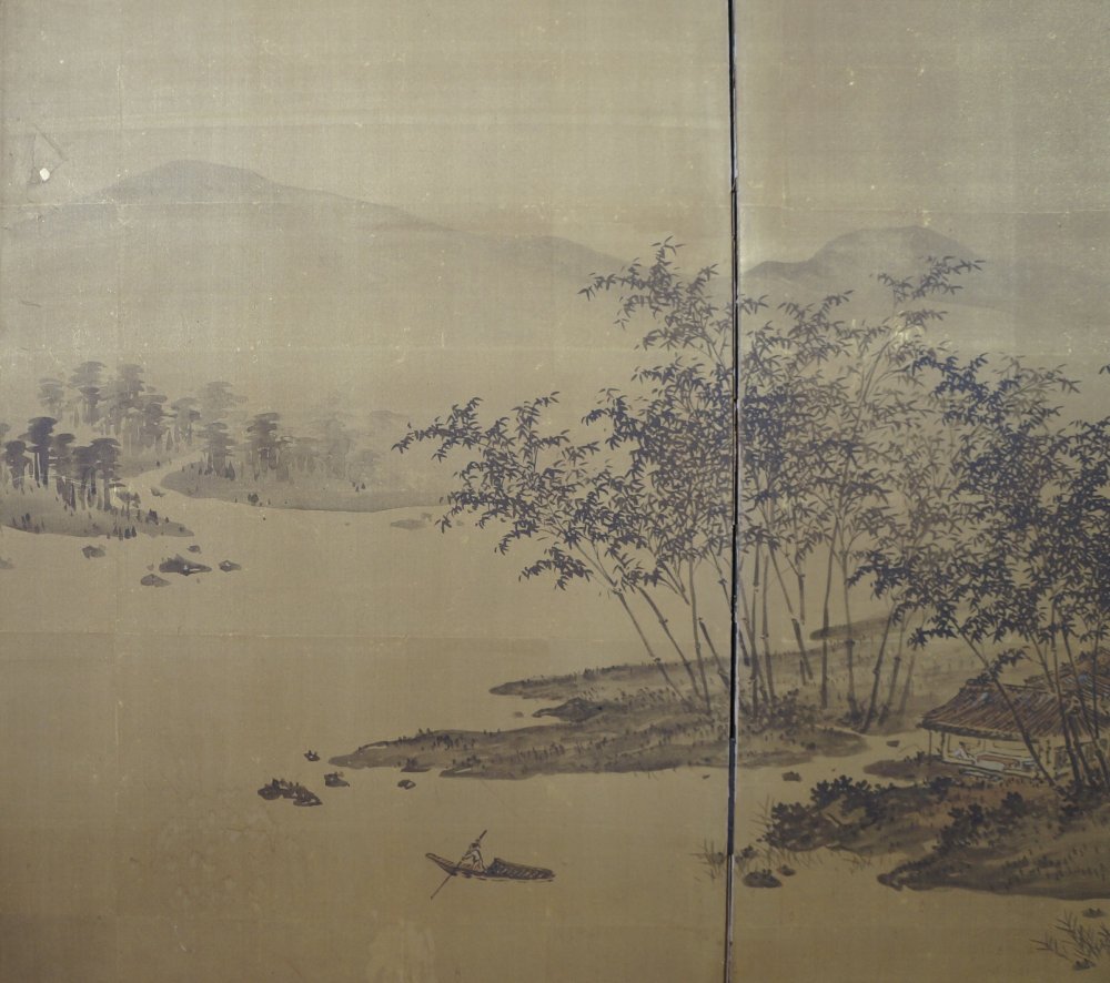 Minimalist Japan landscape Byobu wind screen Zen gold leaf 1900 art