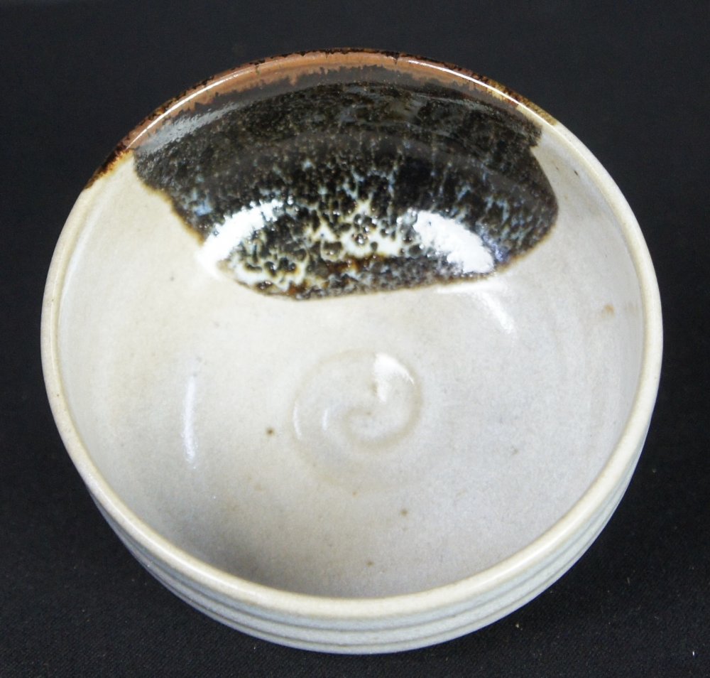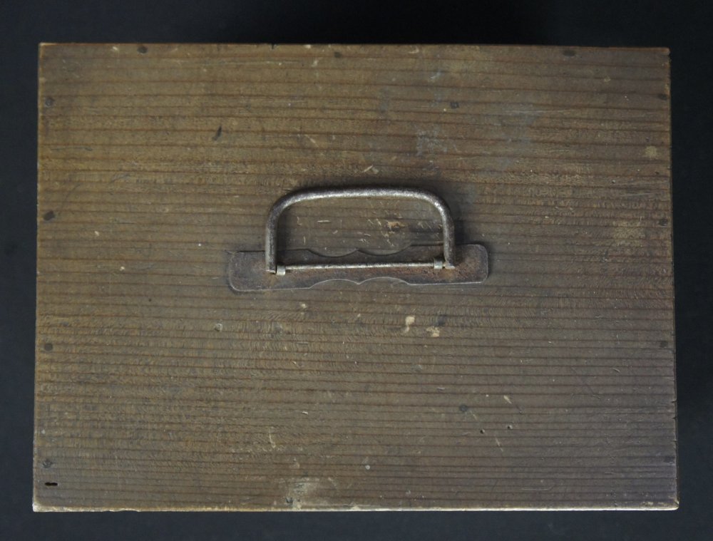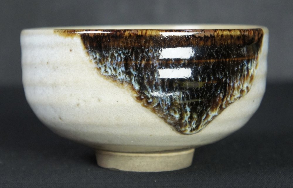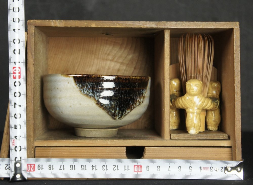 Japan vintage Chabako tea box Chawan 1924 kiln hand craft Oribe ceramic.