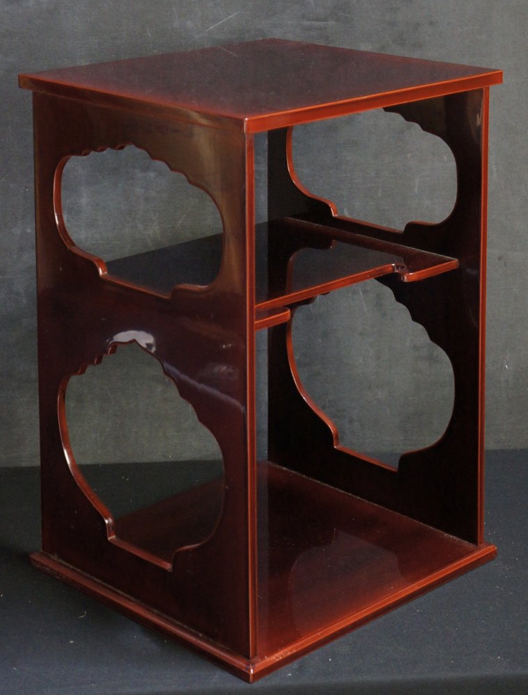 Japanese small Chadansu tea cabinet in good conditions, Shunke-nuri lacquered surface. Made of wood. Light wear from usage, immediately usable.