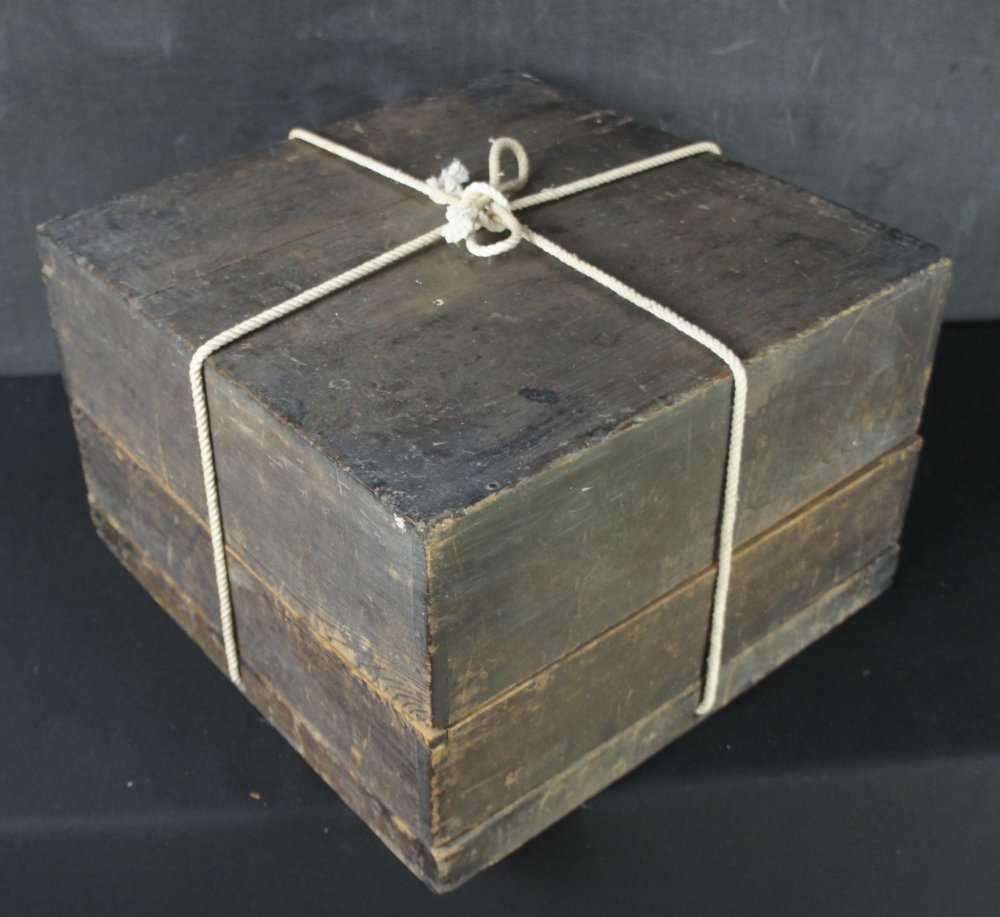 Antique large size Chausu Japanese tea master hand millstone for green tea powder, nice craft, good conditions, hand carved from hard Japan Kyoto granite, complete of rotating handle and protective wood box, Kyoto manufacture. Some wear from time and usage visible, no fractures, wear on box. Good green tea powder grinder, no fractures, immediately usable.