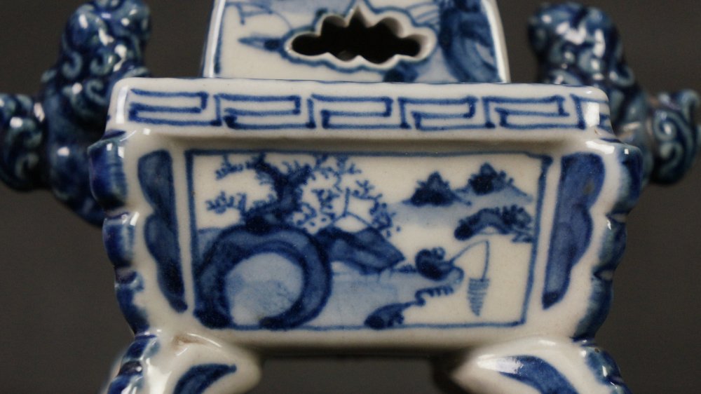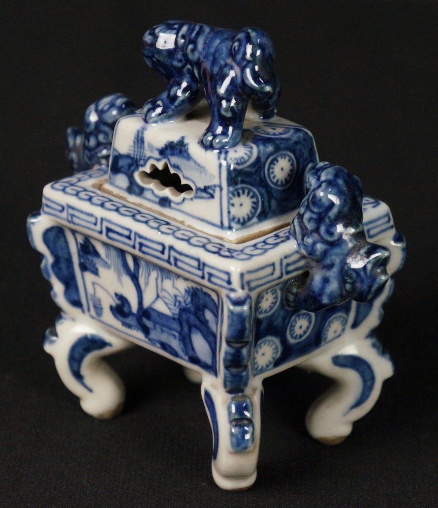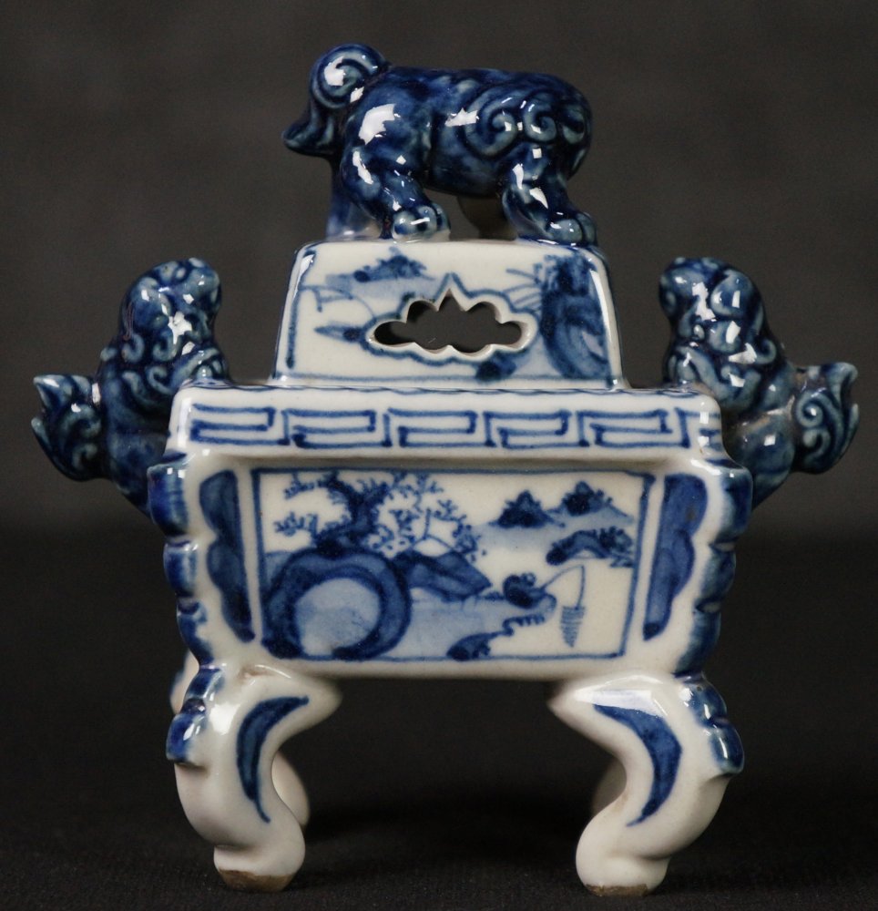 Japan Sometsuke-Koro ceramic censer sculpture 1950 kiln art craft.
