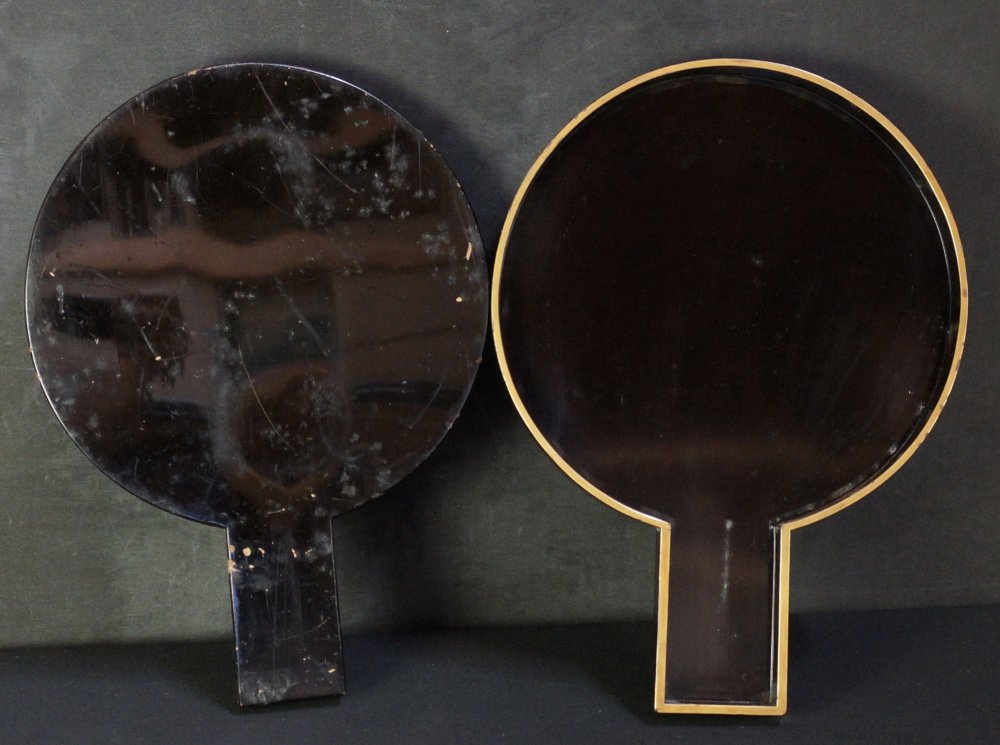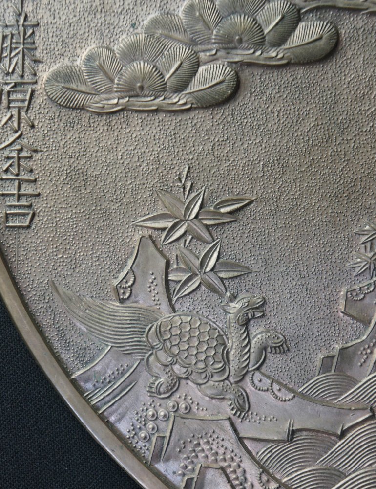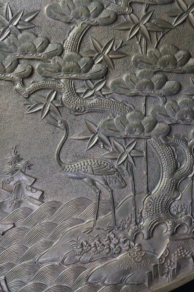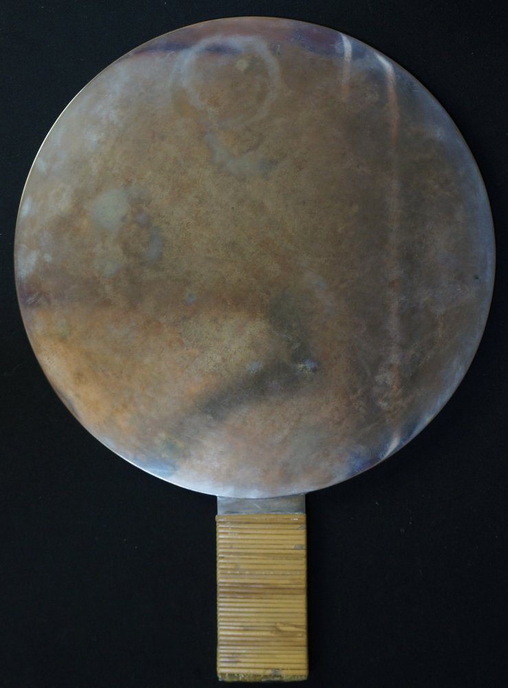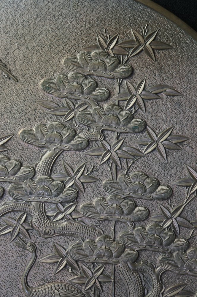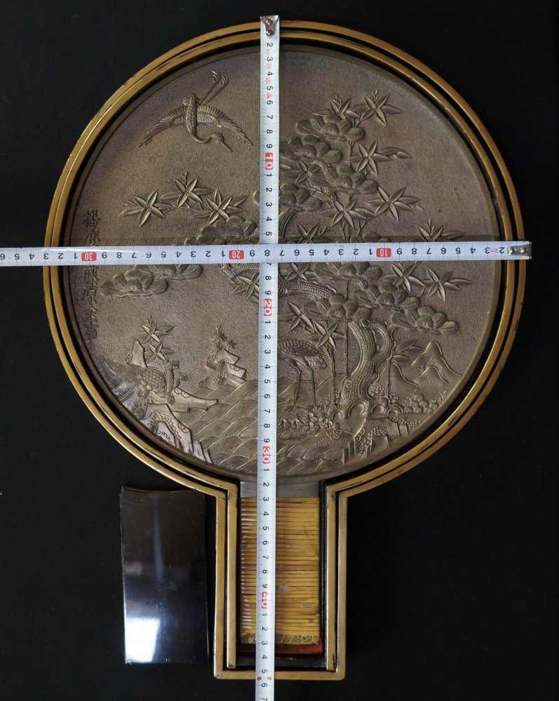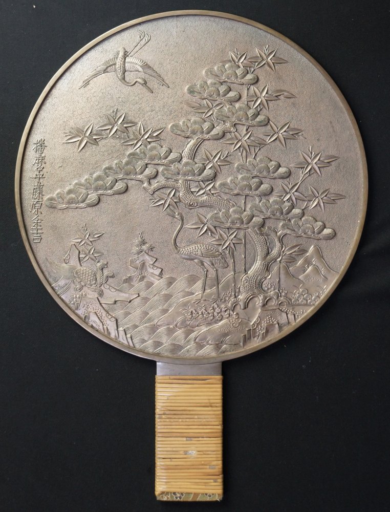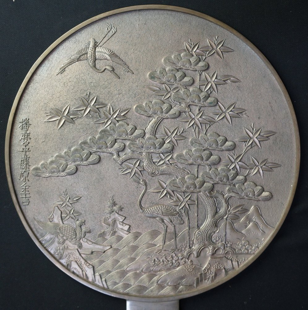 Antique Japanese big bronze mirror Geisha wear 1880 Chocho-Mon