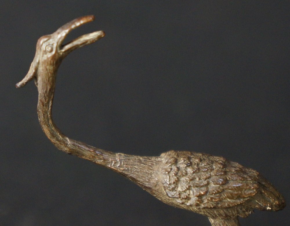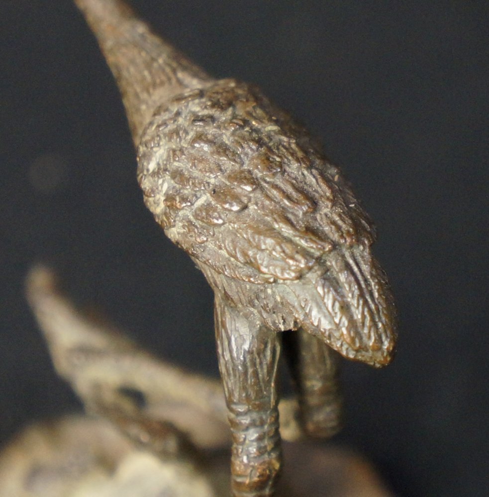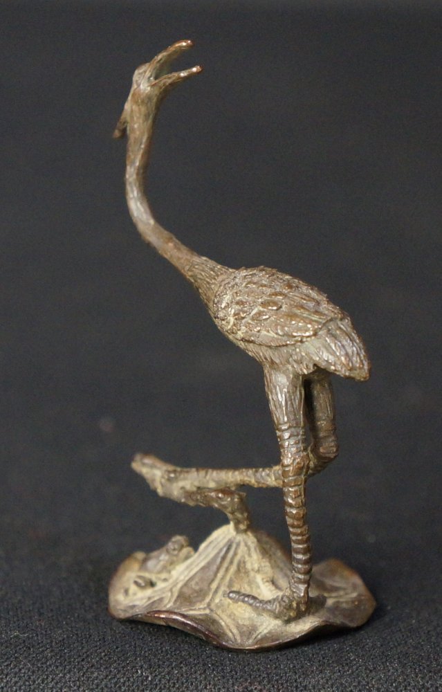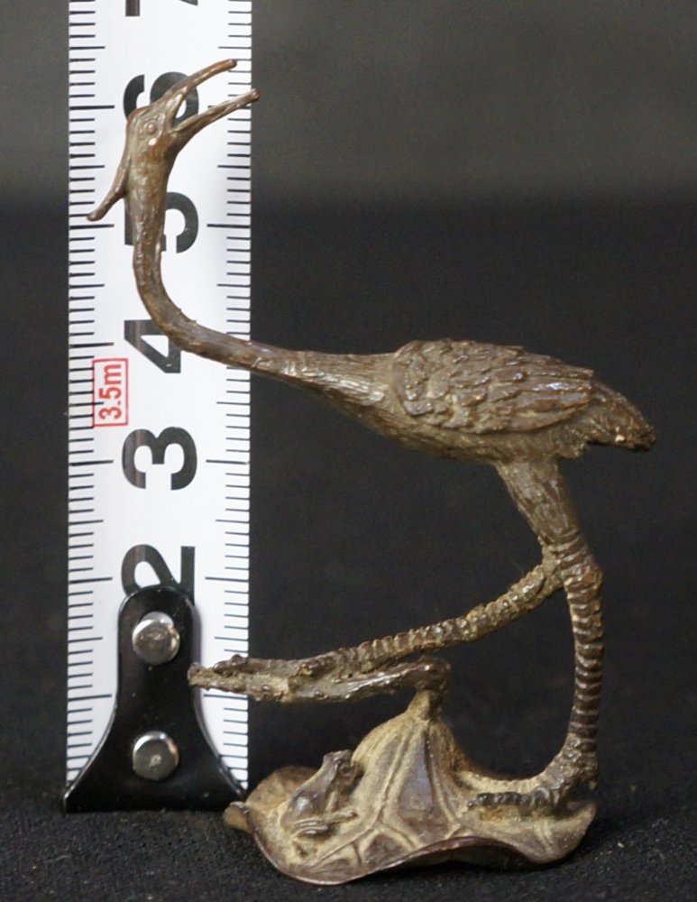 Antique Japan bronze miniature sculpture crane and the frog 1800 lost wax craft