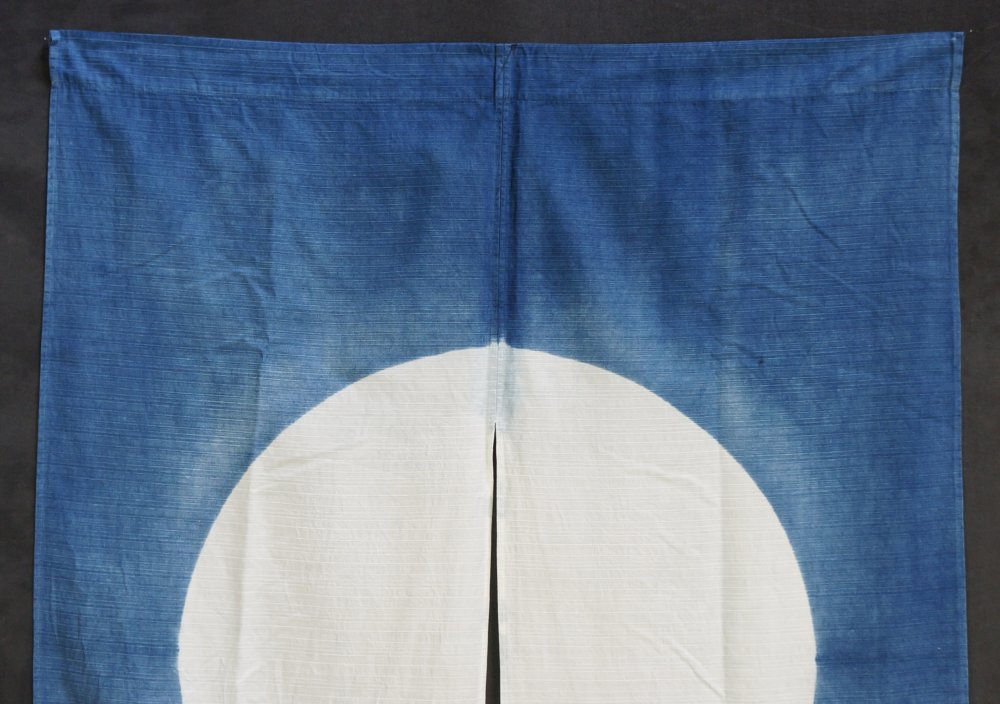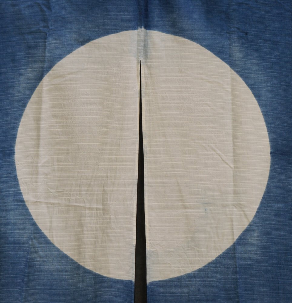 Vintage Noren Japanese Takayama blue dye curtain 1970 Japan full moon craft