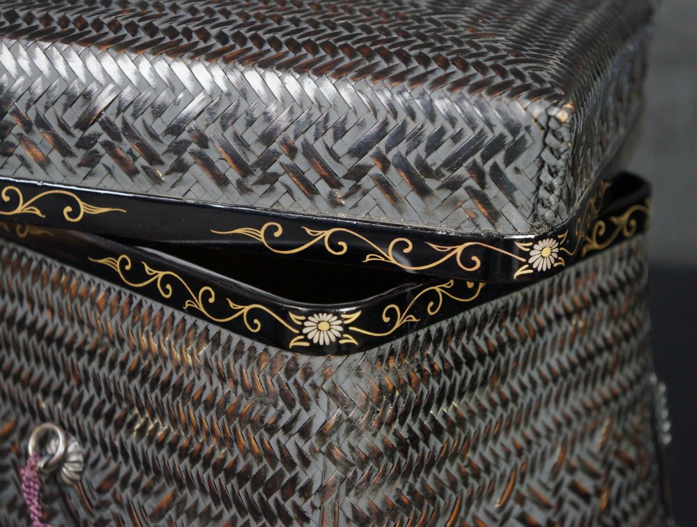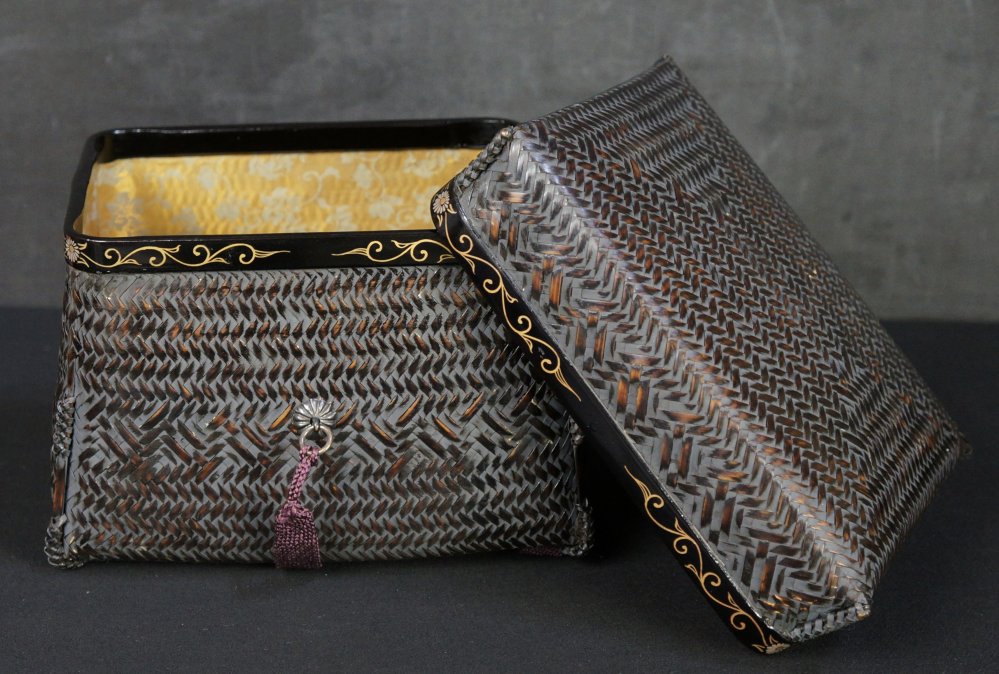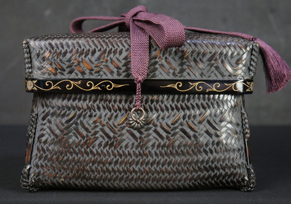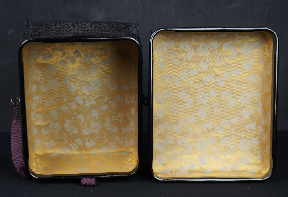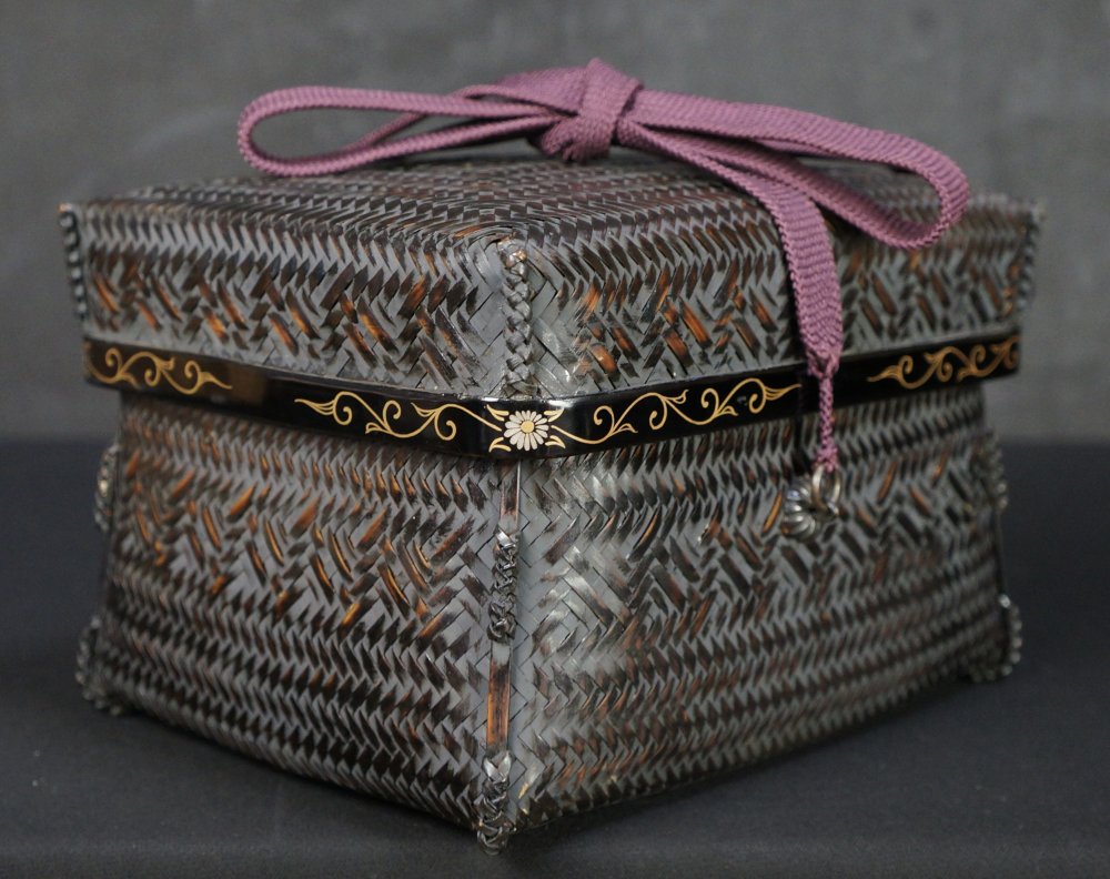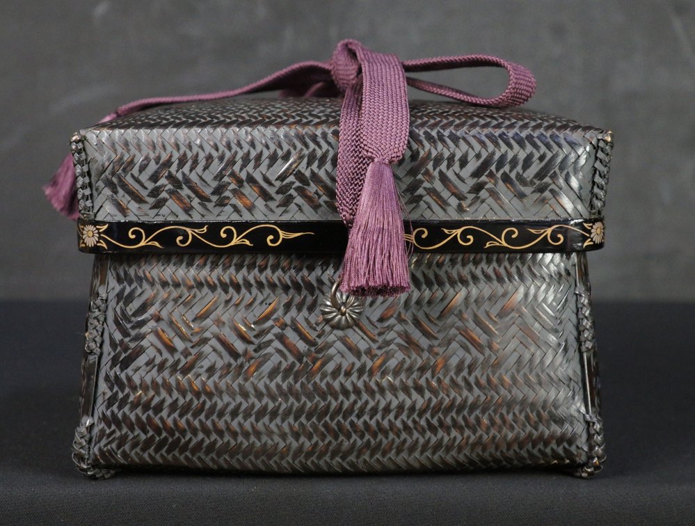Fine Japanese Goshokago lacquered bamboo tea set box 1970 Maki-e
