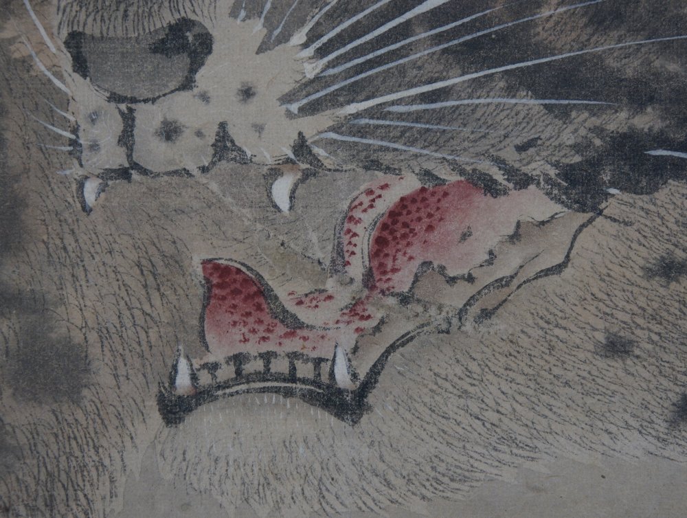 Japanese tiger Tora watercolor painting Nekotora Zen art 1900 Gyoshu painting.