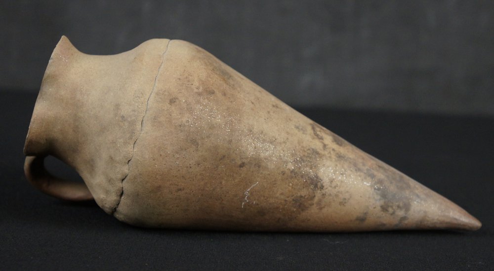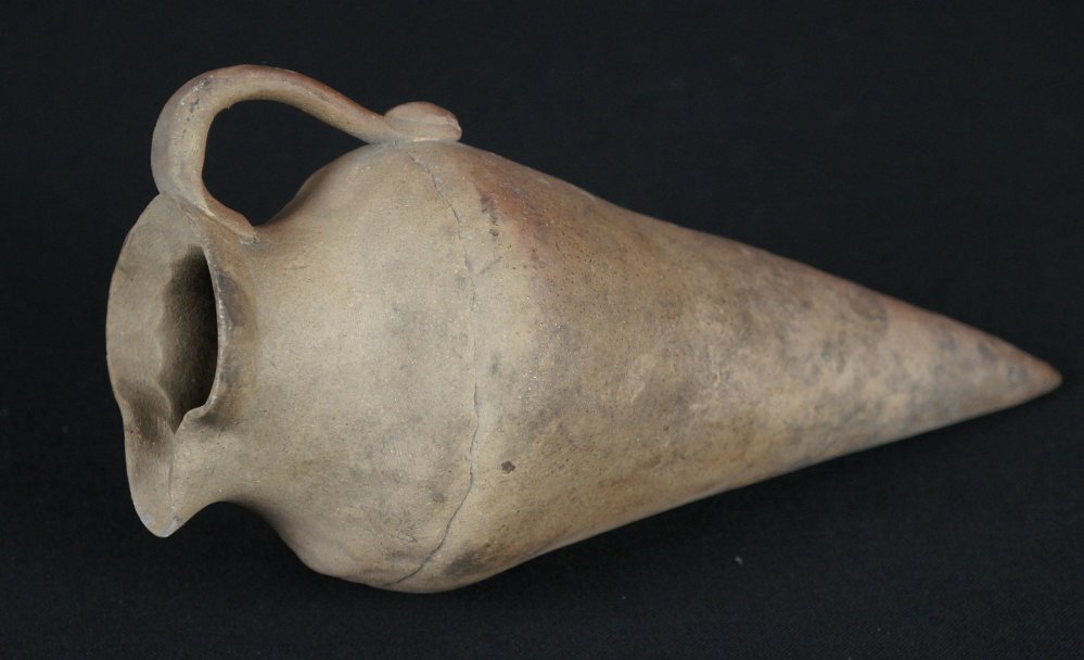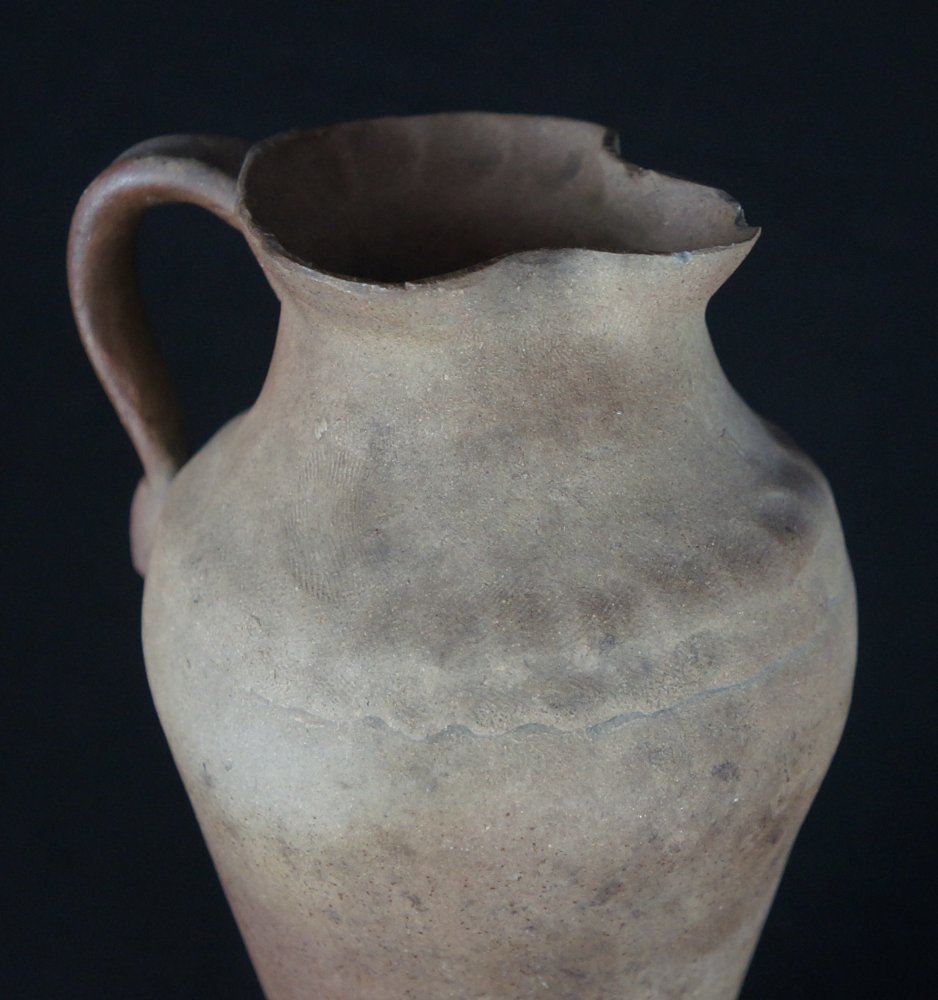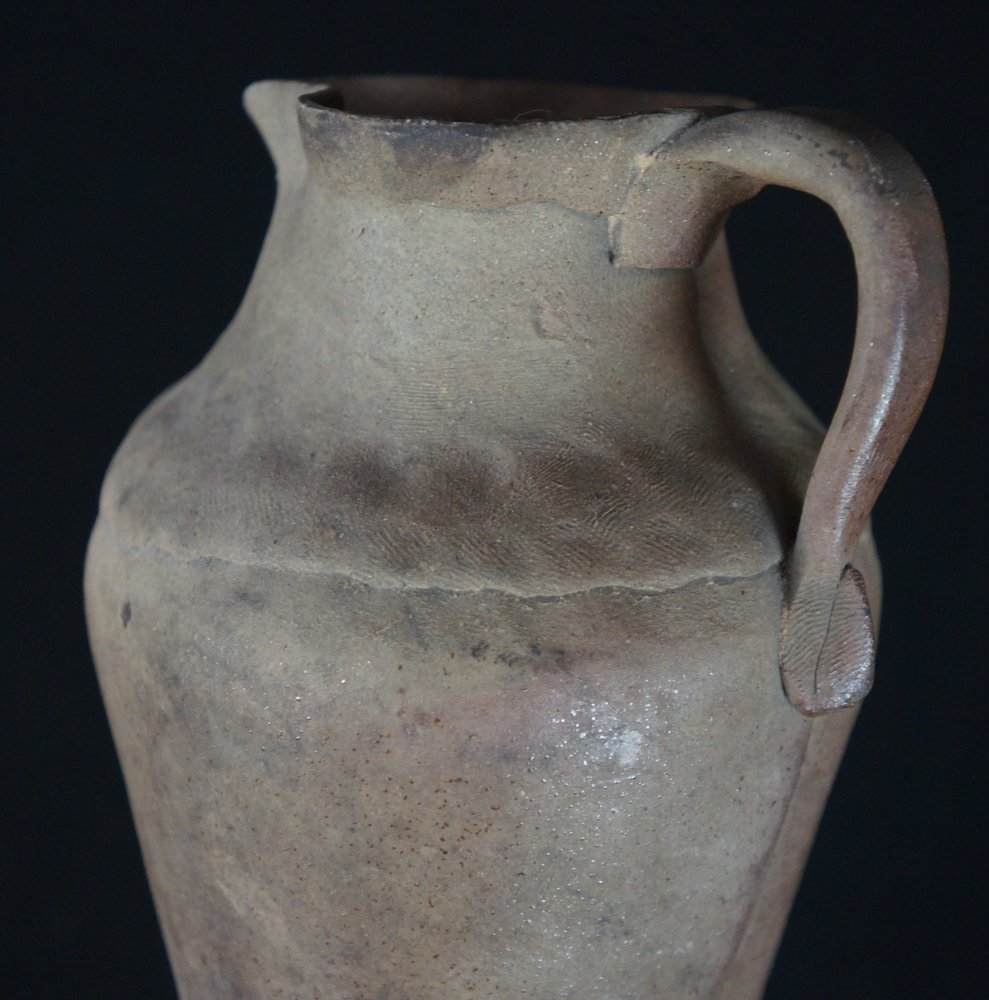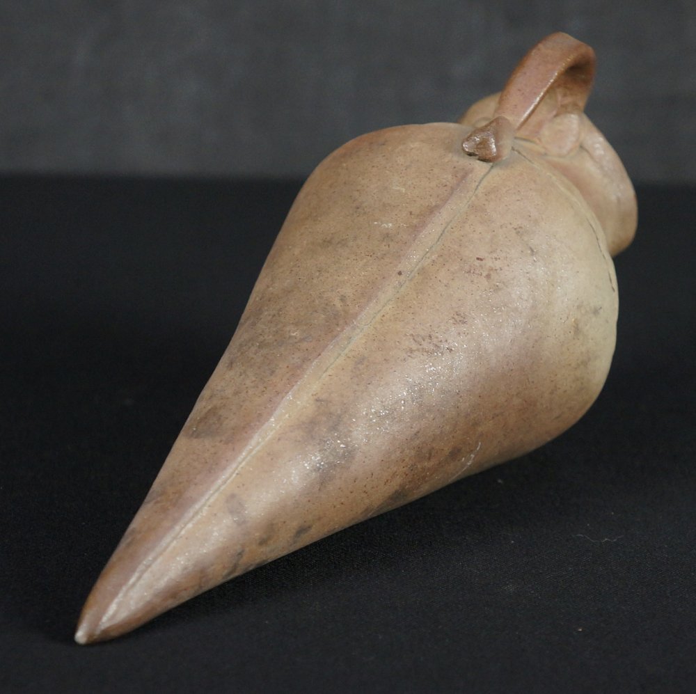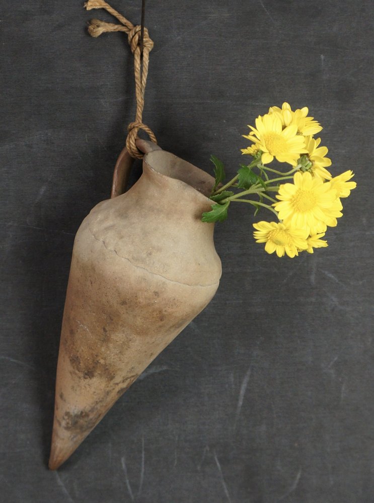 Japanese rural ceramic Hana-kake wall vase for Ikebana floral compositions. Hand made rural kiln originaly used on rural Japanese homes inserted inside fireplace ash for heating Sake, nice shape, good conditions, small chip on spout, immediately usable.