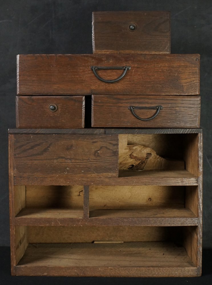 Vintage Japanese Haribako sowing cabinet 1900 interior wood craft.