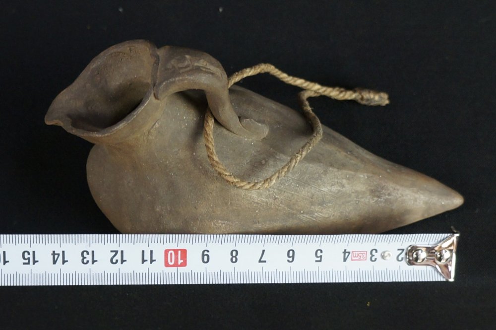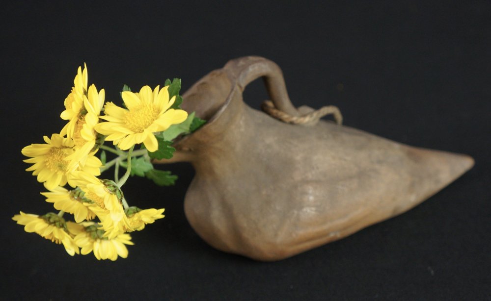 Japanese rural ceramic Hana-kake wall vase for Ikebana floral compositions. Hand made rural kiln originally used in rural Japanese homes inserted inside fireplace (irori) ash for heating Sake, nice Hato bird shape, good conditions no fractures , immediately usable.