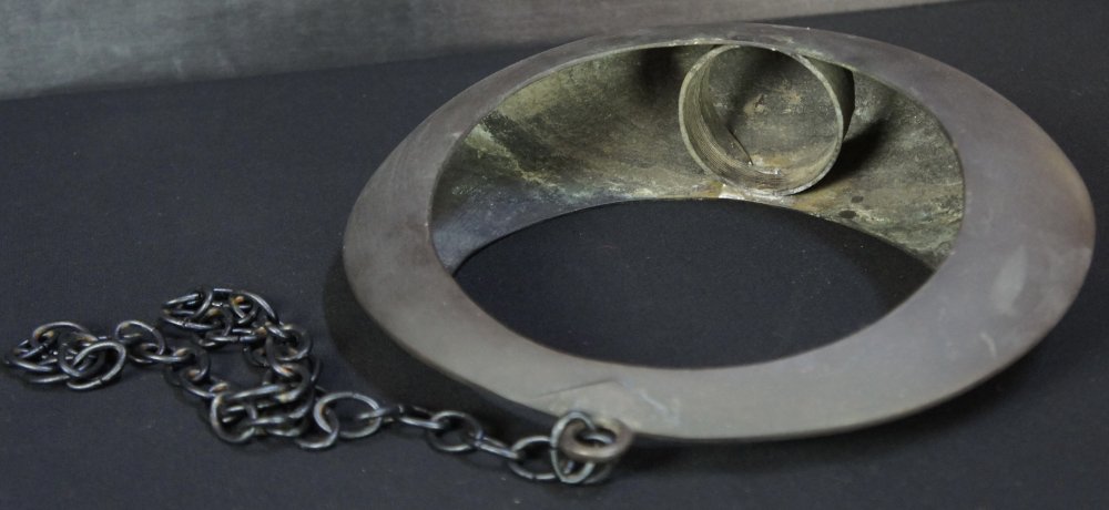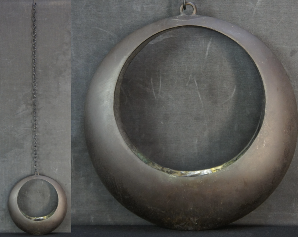 Japanese hanging fill moon vase for Ikebana compositions, good conditions with bronze chain holder. Full Moon shape, good conditions, immediately usable.