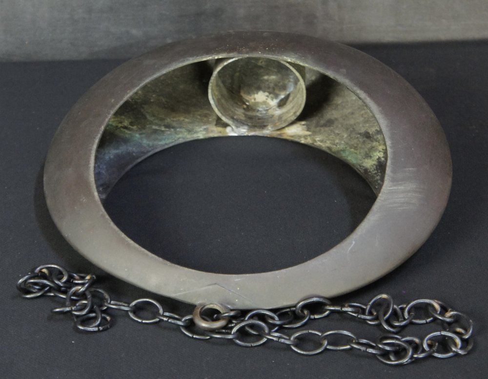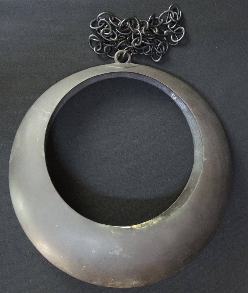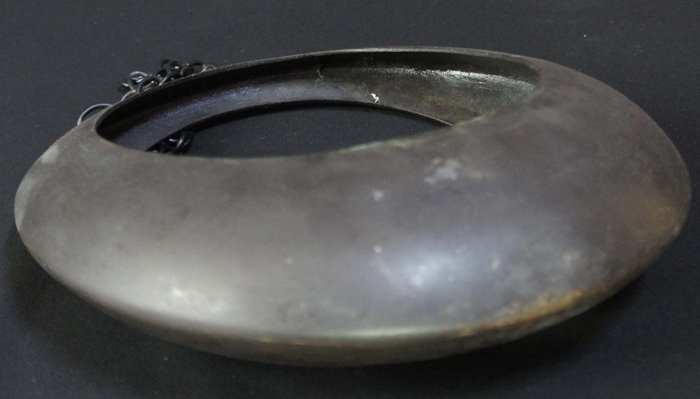 Japan bronze Ikebana hanging full moon vase Kyoto garden 1950 craft