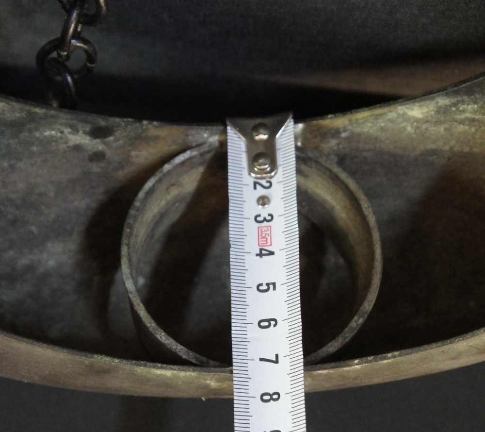 Dimensions: full H with chain 104 cm Diam 26 cm, weight 1.600 Kg + wrapping