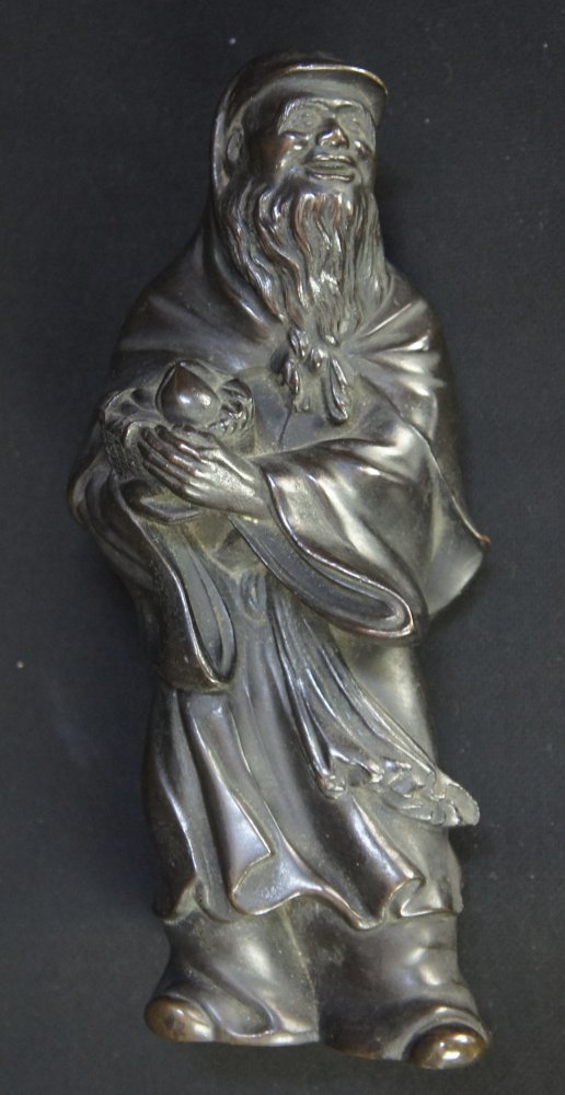 Antique Japan Jurojin bronze sculpture 1880 Meiji lost wax craft
