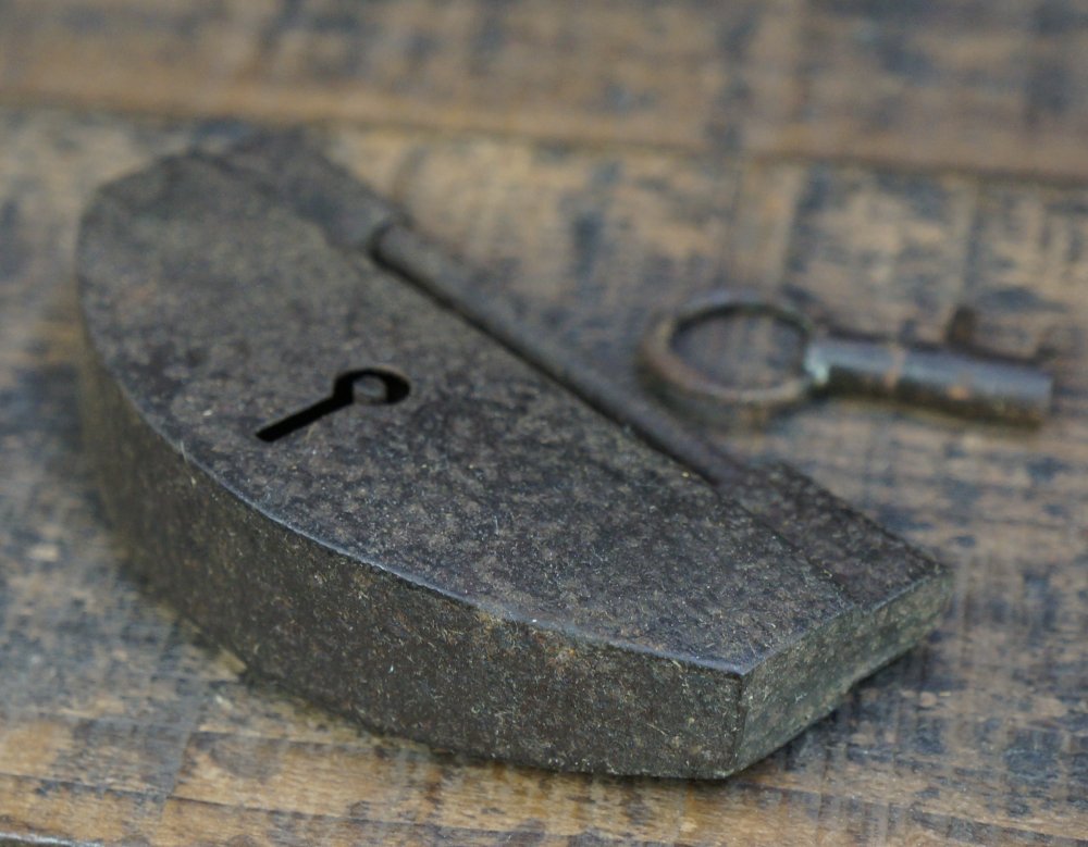 Antique Japanese iron lock with working key, blacksmith hand craft, good conditions, nice patina. Used in Japan Edo era to lock chests and furniture. Well preserved, immediately usable.
