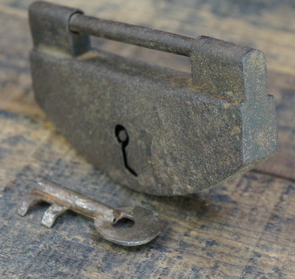 Antique Japanese iron lock with working key, blacksmith hand craft, good conditions, nice patina. Used in Japan Edo era to lock chests and furniture. Well preserved, immediately usable.