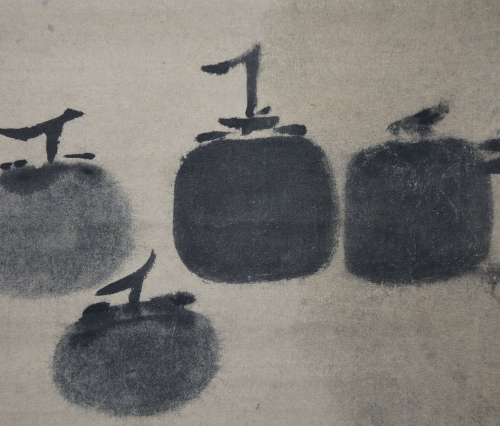 Japan Minimalist zen Kaki persimmon composition 1800 hand painting