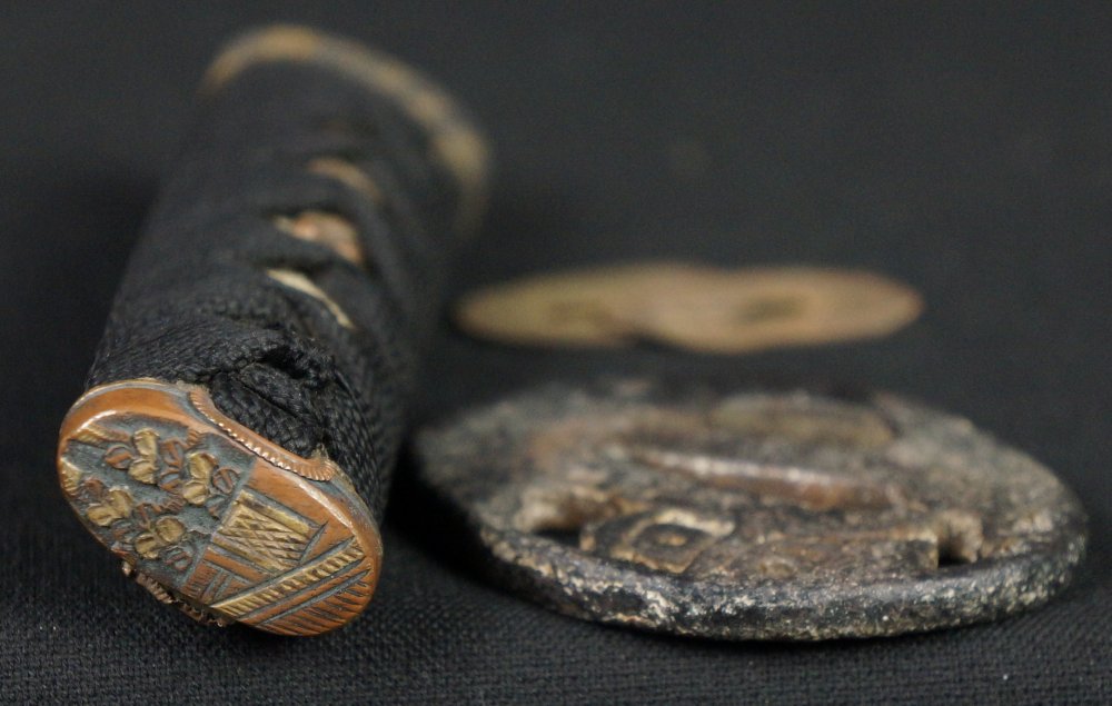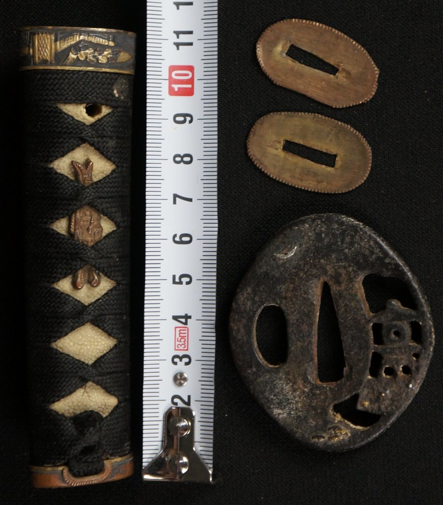 Japanese Kotsuka Katana / Tanto handle, hand craft from Edo era. Nice patina and good conditions, iron, wood, bronze, silk, Same, all original materials, wear from usage and time. Immediately usable.