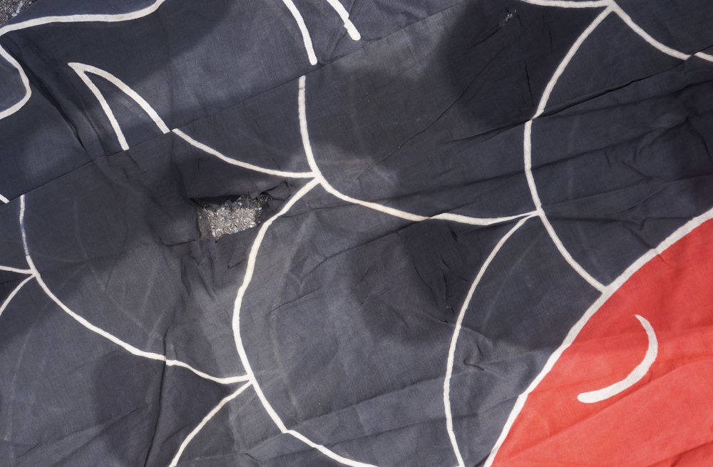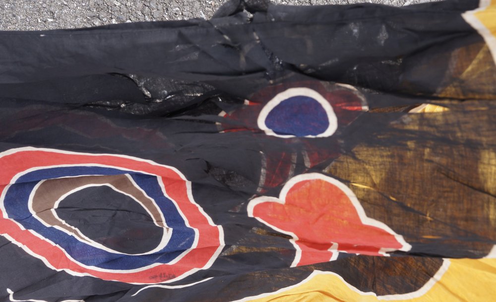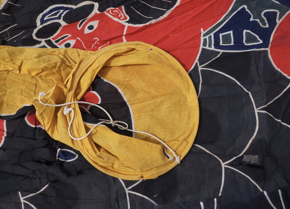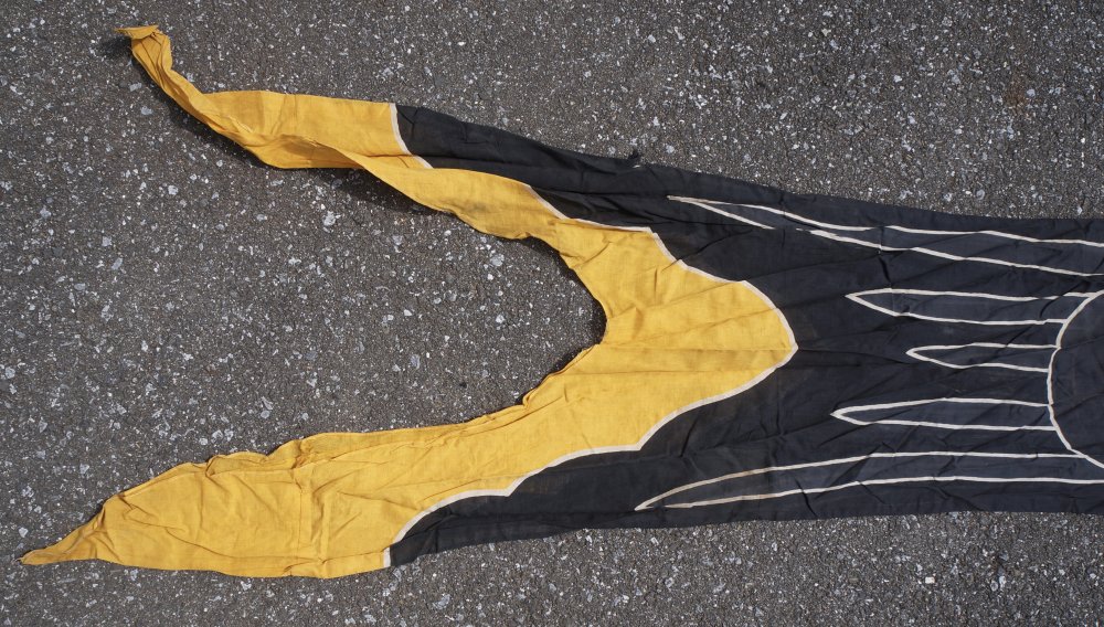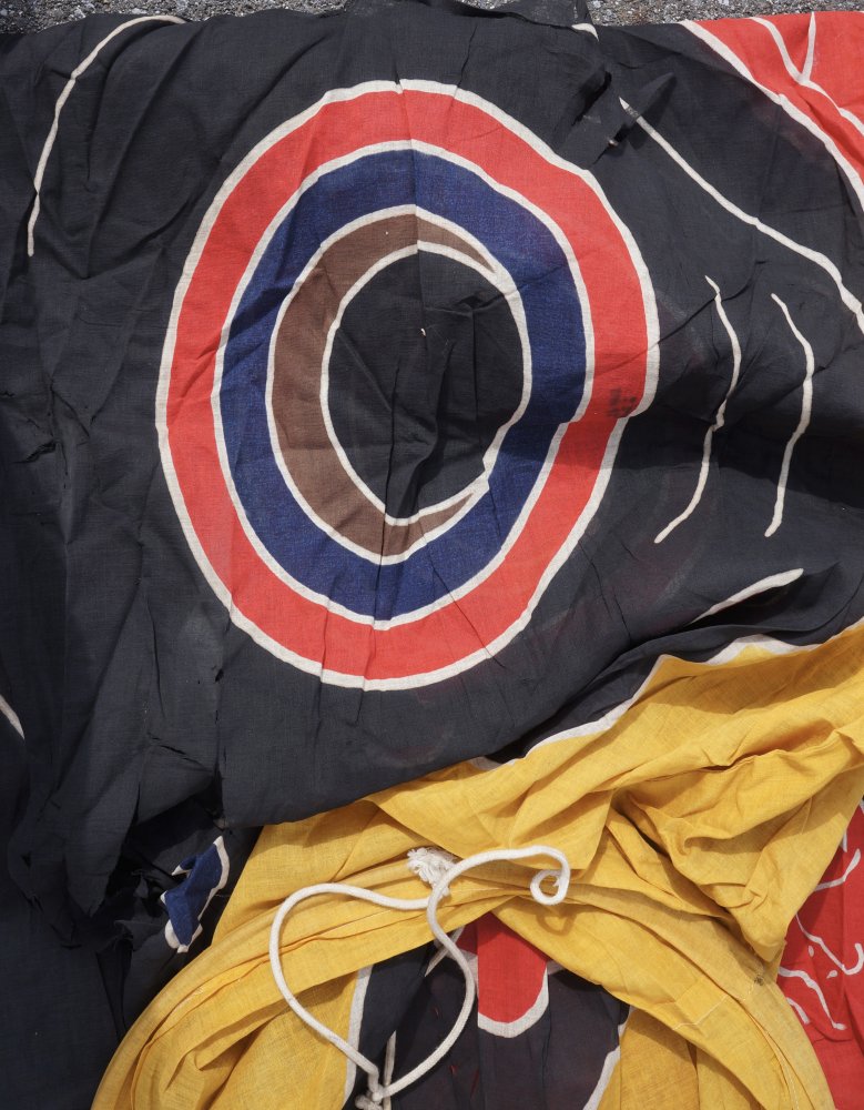 POOR CONDITIONS, extensive wear from long usage and time, no longer usable as flag, very brittle. Made from cotton and bamboo natural materials. Japan Gifu rural Japan craft wind art.