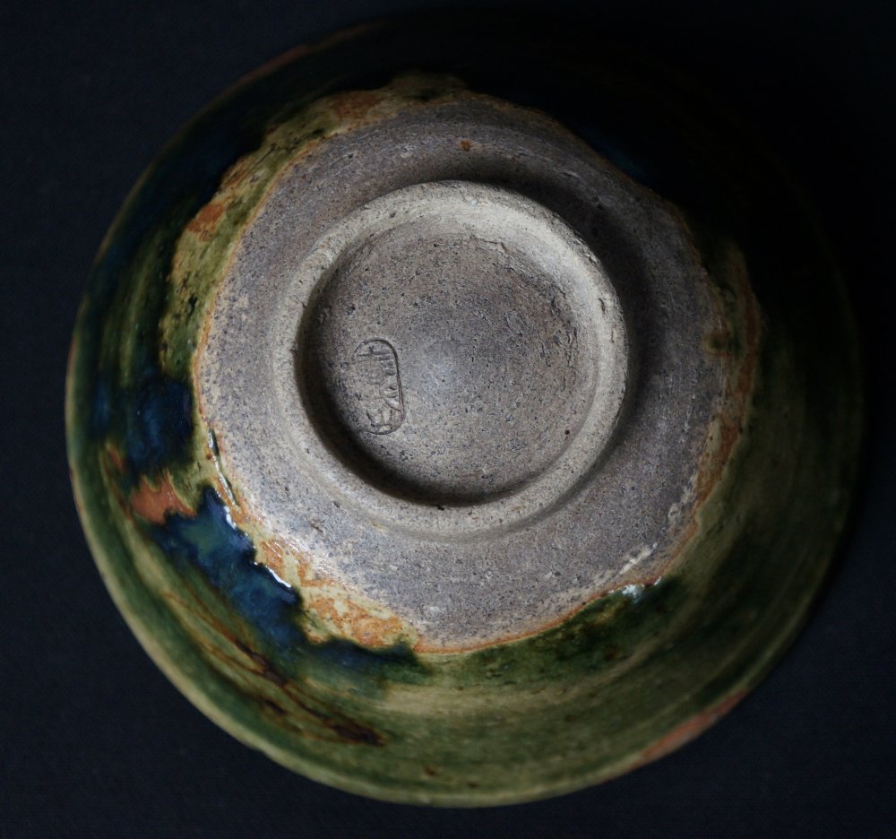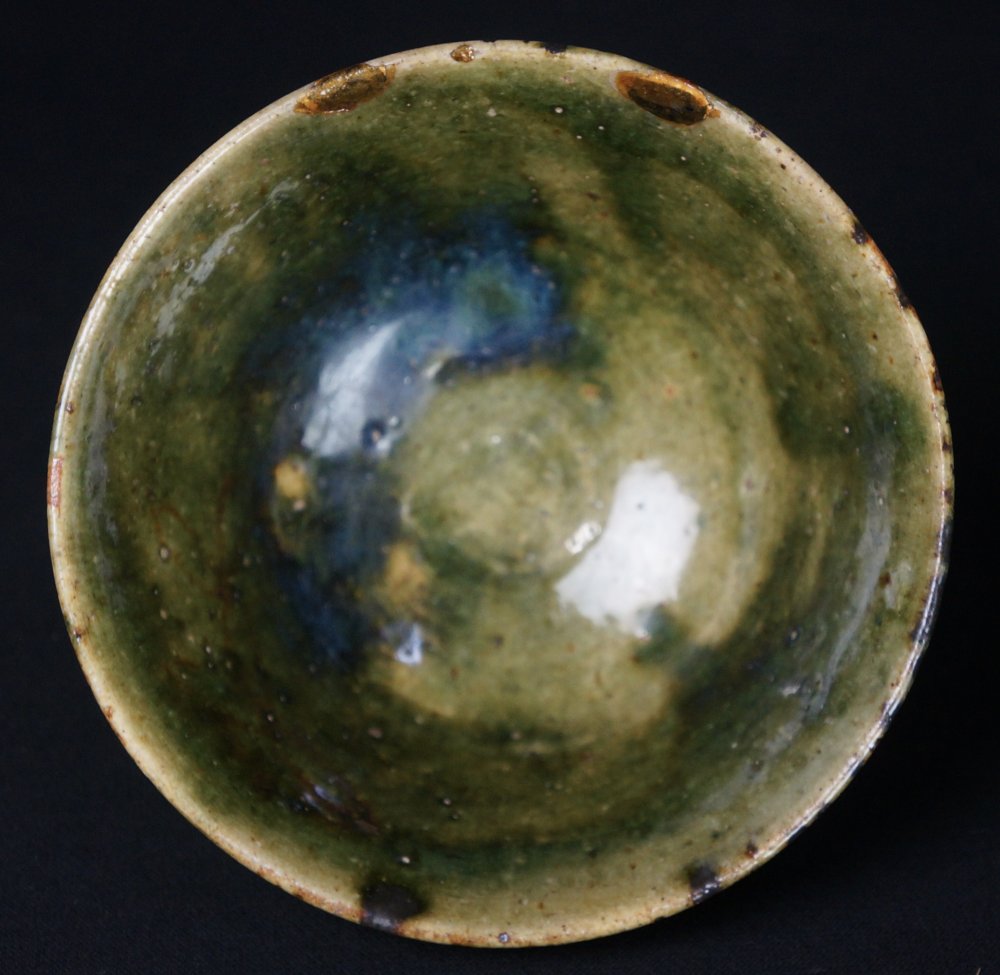 Japanese Chawan Kintsuki Oribe bowl 1930 Tea cup Japan ceramic