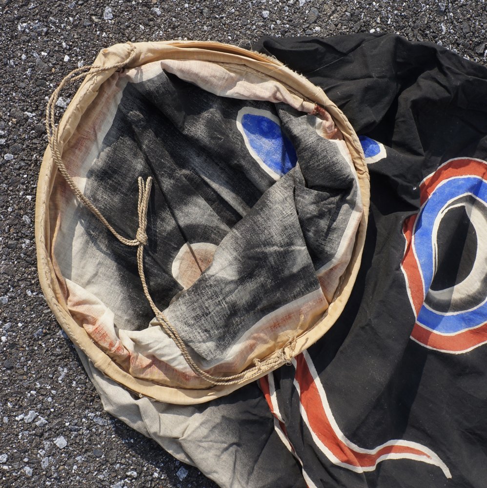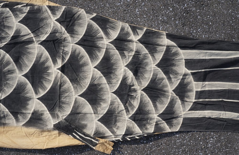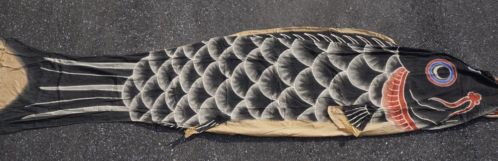 Vintage Japan giant Koi carp kite 1950 Japanese rural craft Koinobori wind art Kuro