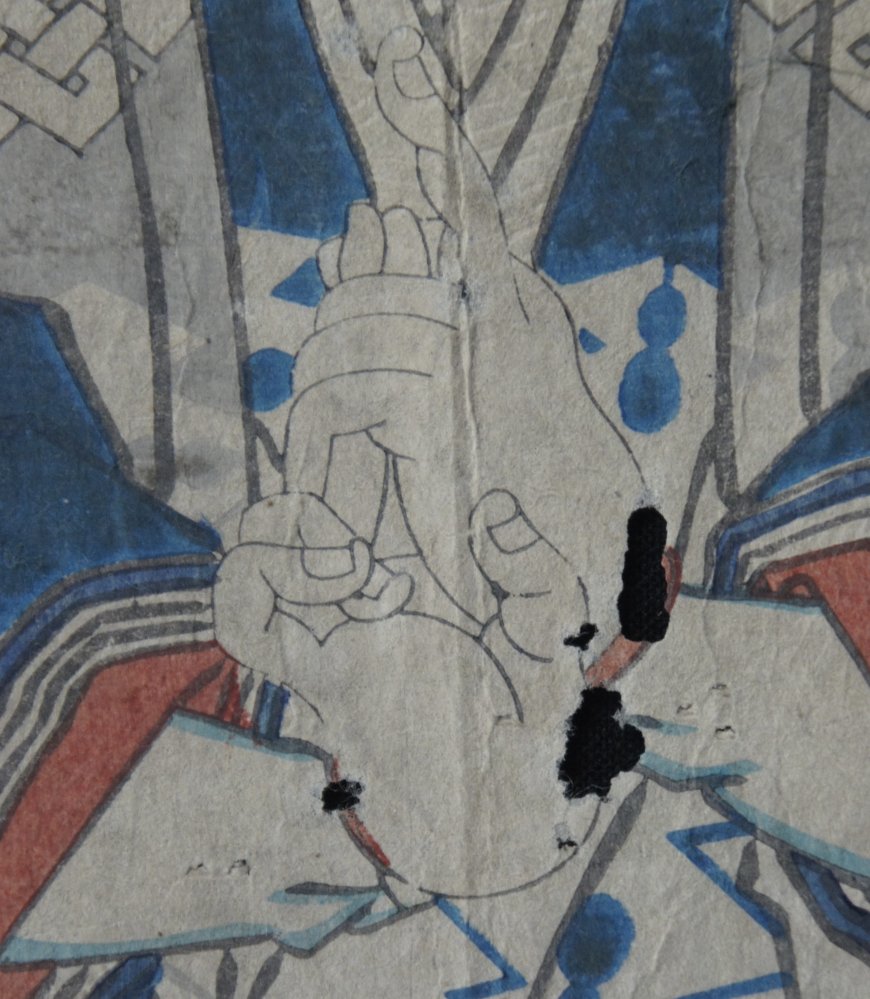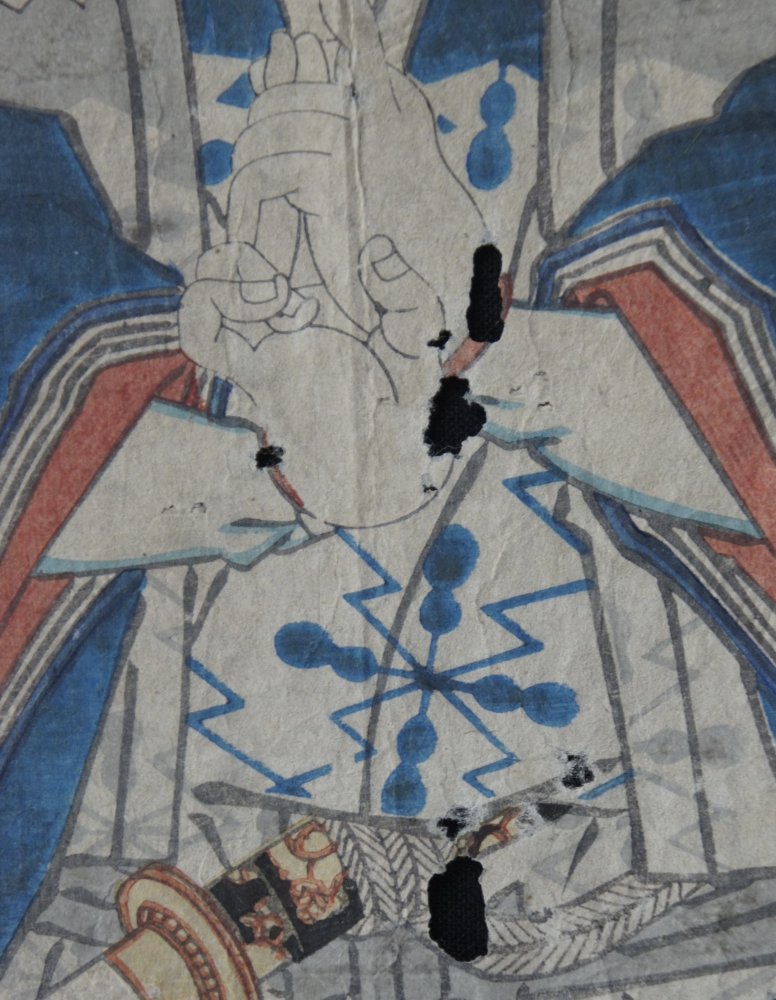 master, Samurai characters, nice compositions and details. Poor conditions, extensive wear from time and long  handling. Nice character.