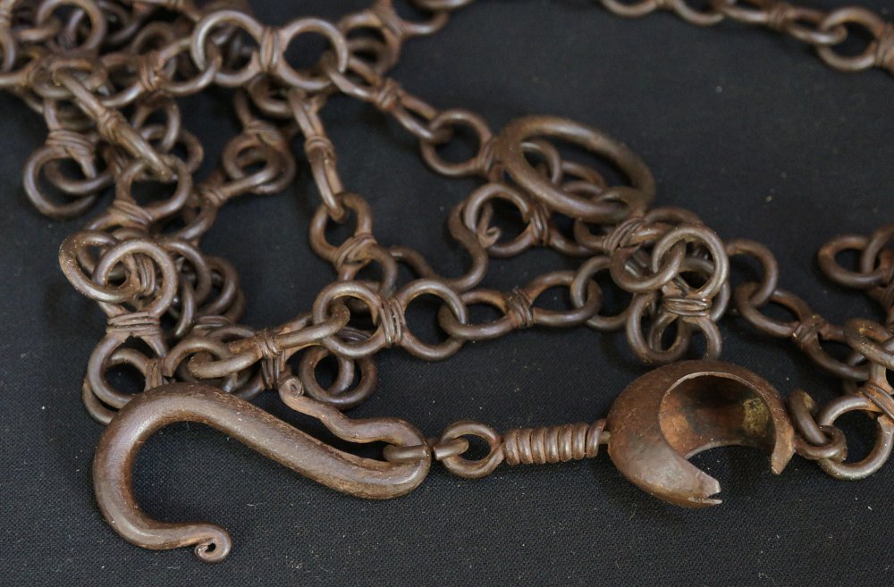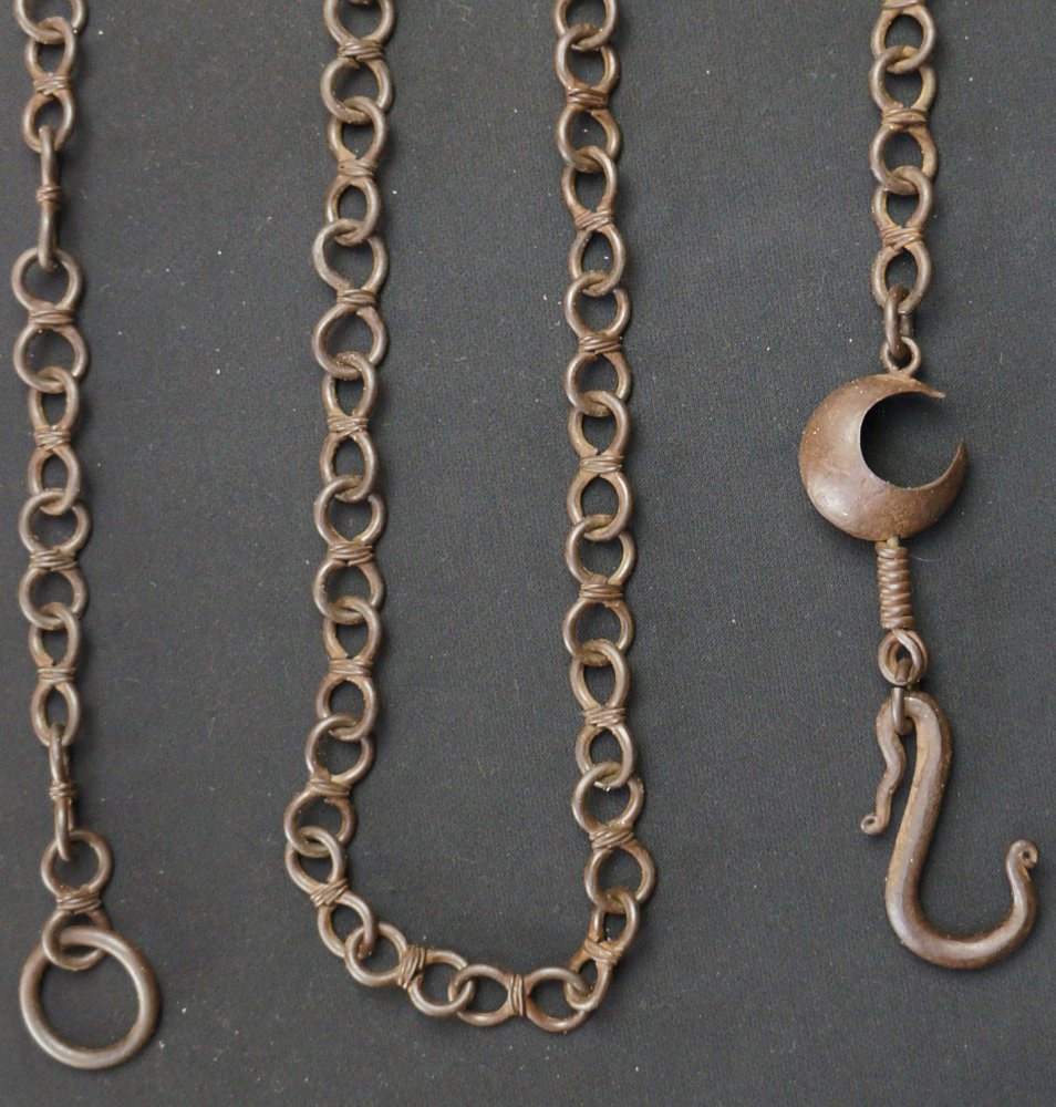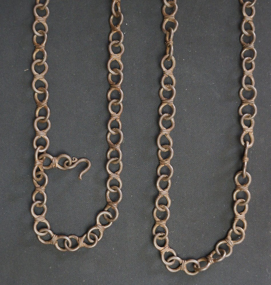 Antique Kusari iron chain hand forged Ikebana floral tool 1800 Edo craft